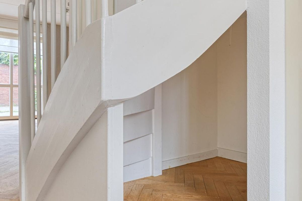 Bij binnenkomst in de hal valt direct de luxe afwerking op, met een prachtige visgraat parketvloer. De betegelde toiletruimte is voorzien van mozaïek op de wanden, wat zorgt voor een stijlvolle uitstraling.De L-vormige woonkamer is licht en ruim en heeft openslaande deuren naar de tuin. De open keuken aan de voorzijde is voorzien van topapparatuur, zoals een Miele koel- en vrieskast, Bosch vaatwasser en een losstaande magnetron. Tot slot biedt het super-de-luxe Boretti VFP94IX gasfornuis alle mogelijkheden voor de chef van het huis! Het werkblad biedt een royaal werkoppervlak en veel opbergruimte, ideaal voor de culinaire liefhebber. Onder de trap is er nog een handige trapkast voor extra opbergruimte.