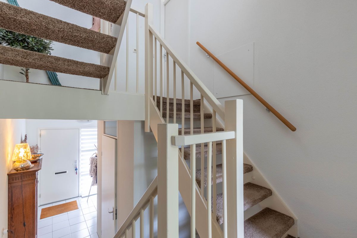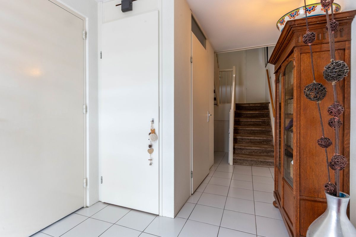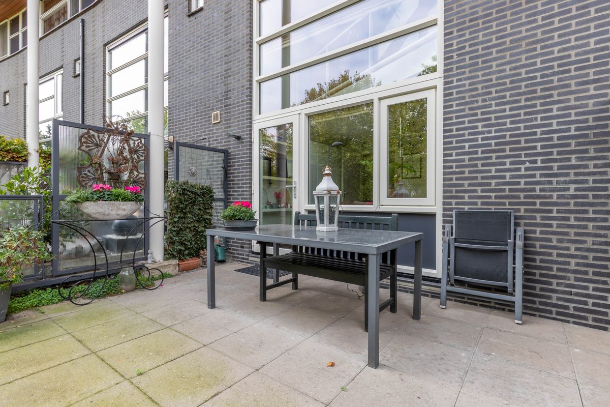 Via het trappenhuis komt u op de volgende laag, het dakterras aan de voorzijde van de woning. Deze ligt op het westen en dus heerlijk op de zon.