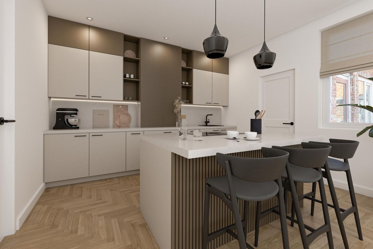 Op de eerste verdieping is nu een grote open overloop met vaste kastruimte en een afgesloten slaapkamer. Met een kleine aanpassing kun je hier eenvoudig twee extra slaapkamers creëren.