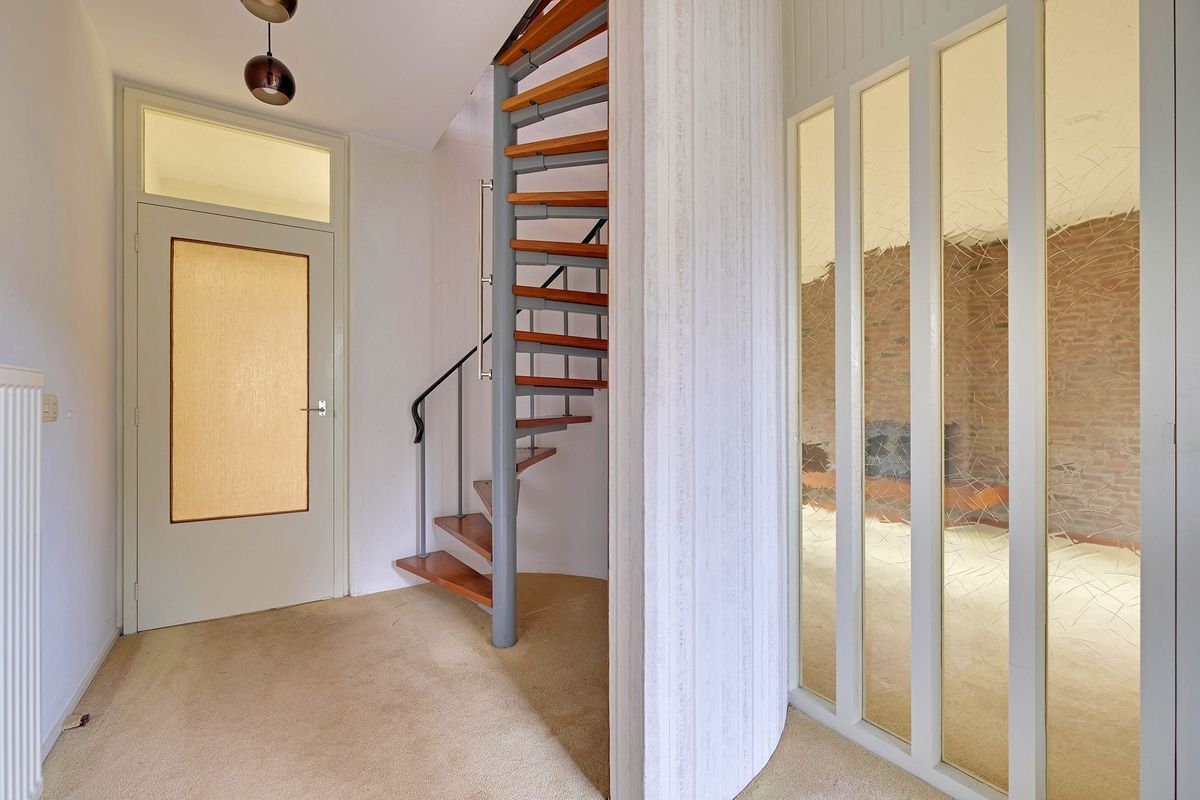 Via de hal met meterkast en toilet kom je in de lichte, ruime woonkamer met een gezellige houtkachel. De L-vormige keuken aan de achterzijde van de woning biedt ruimte om geheel naar eigen wens te moderniseren en geeft direct toegang tot de zonnige tuin. Vanuit de berging bereik je de inpandige garage.