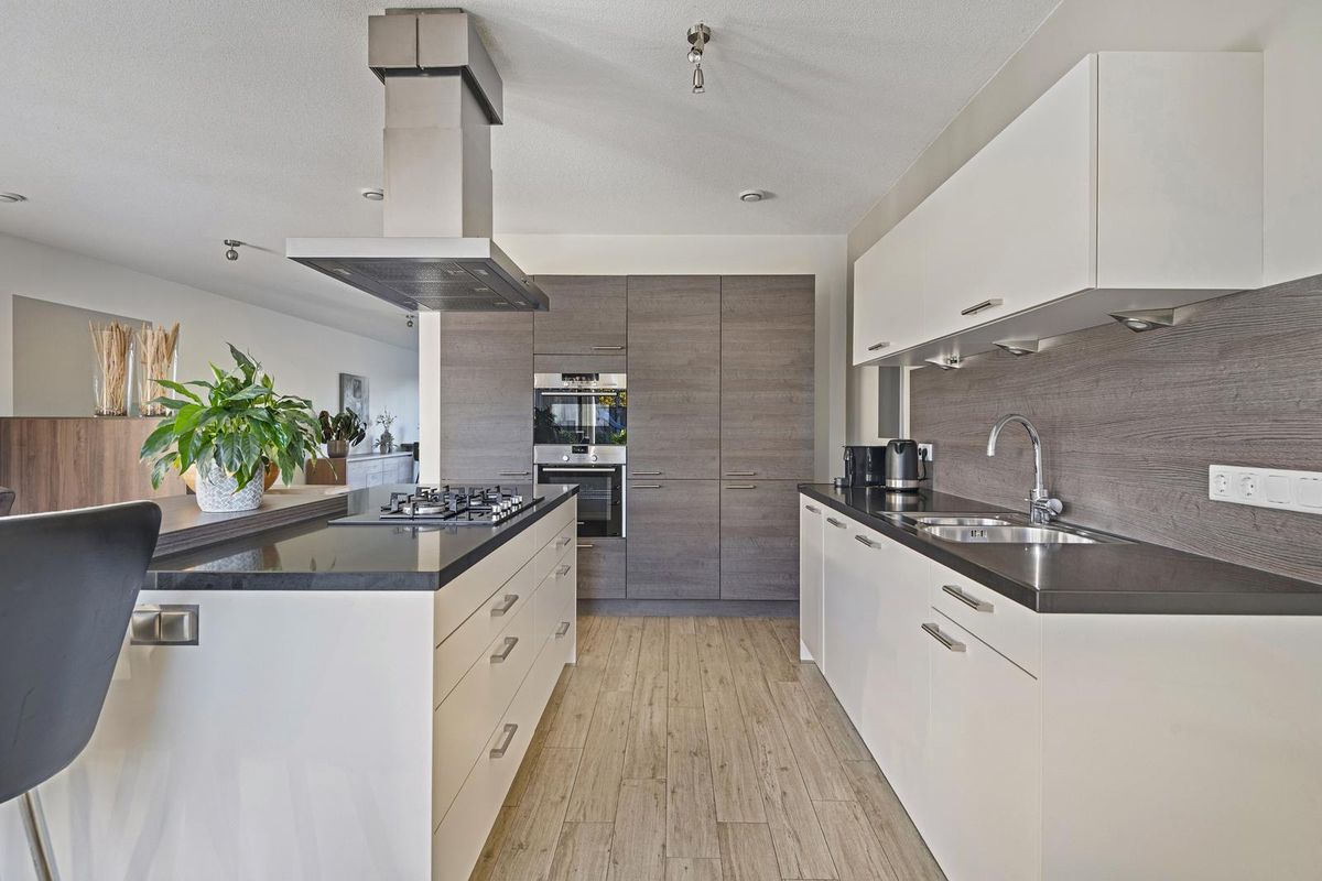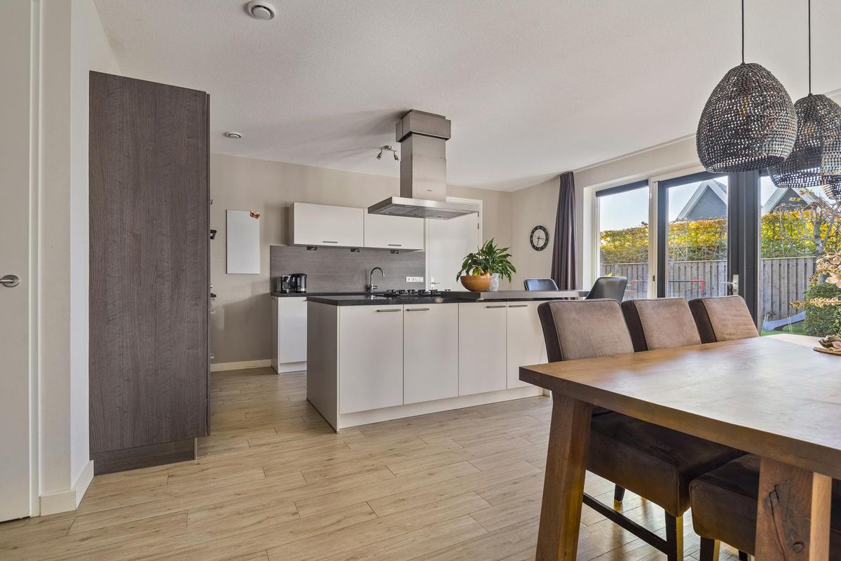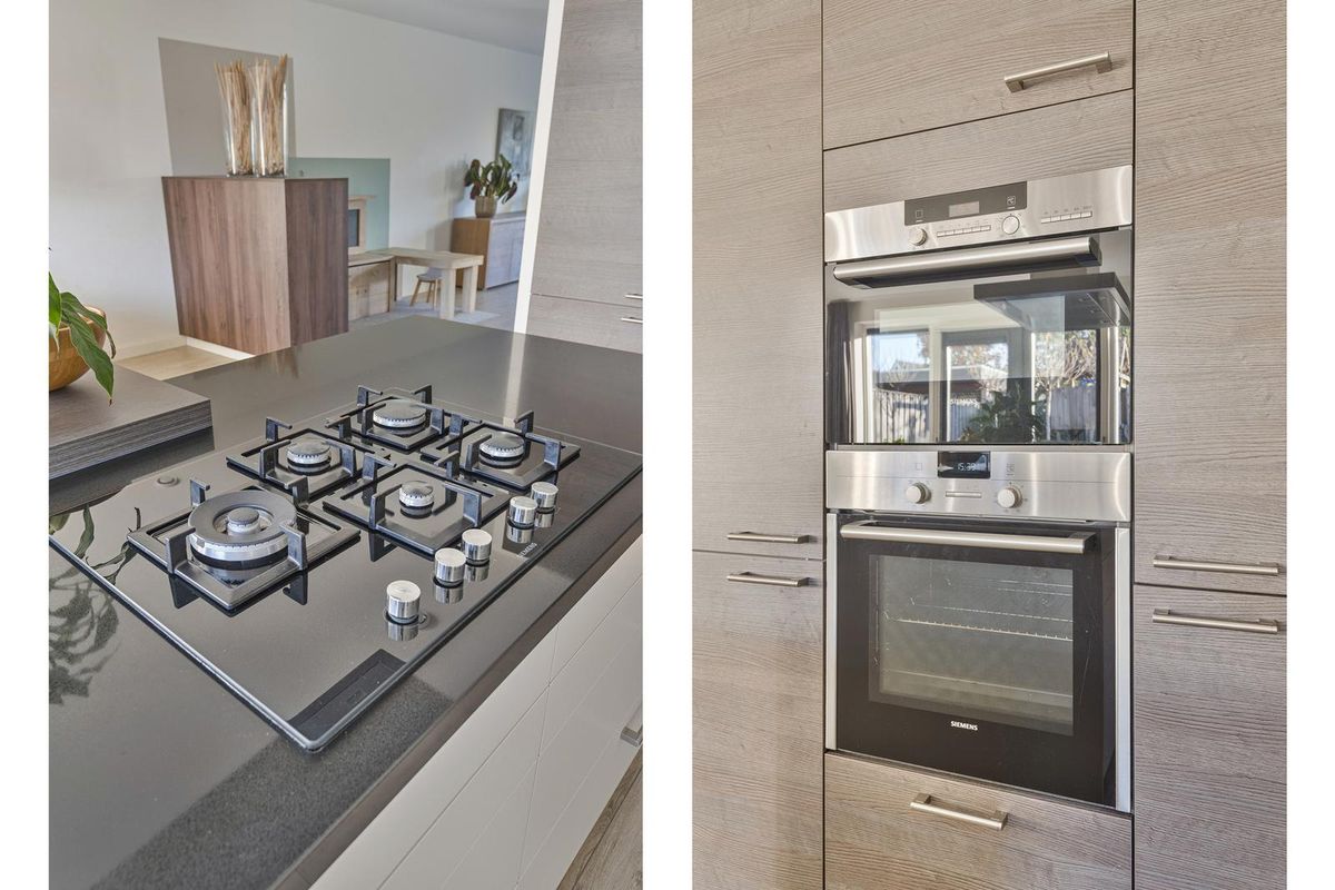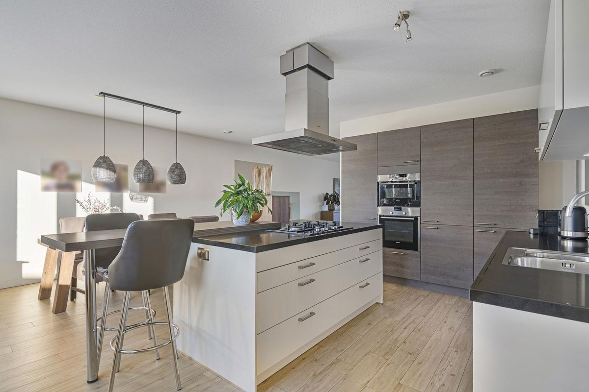De toffe woonkeuken met kookeiland is het hart van het huis – een plek waar je graag samenkomt. De keuken is luxe afgewerkt en voorzien van alle gemakken: een 5-pits gaskookplaat, afzuigkap, koelkast, vaatwasser, combi-oven, oven en volop opbergruimte.