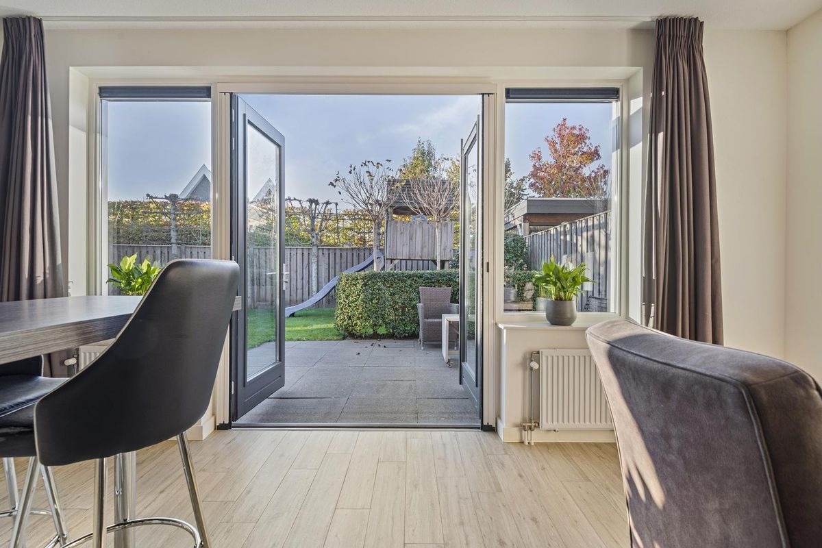 Aan de achterzijde zorgen de openslaande tuindeuren voor een vloeiende overgang naar buiten. Zo verbind je binnen en buiten op een natuurlijke manier en geniet je het hele jaar door van dat heerlijke buitengevoel.