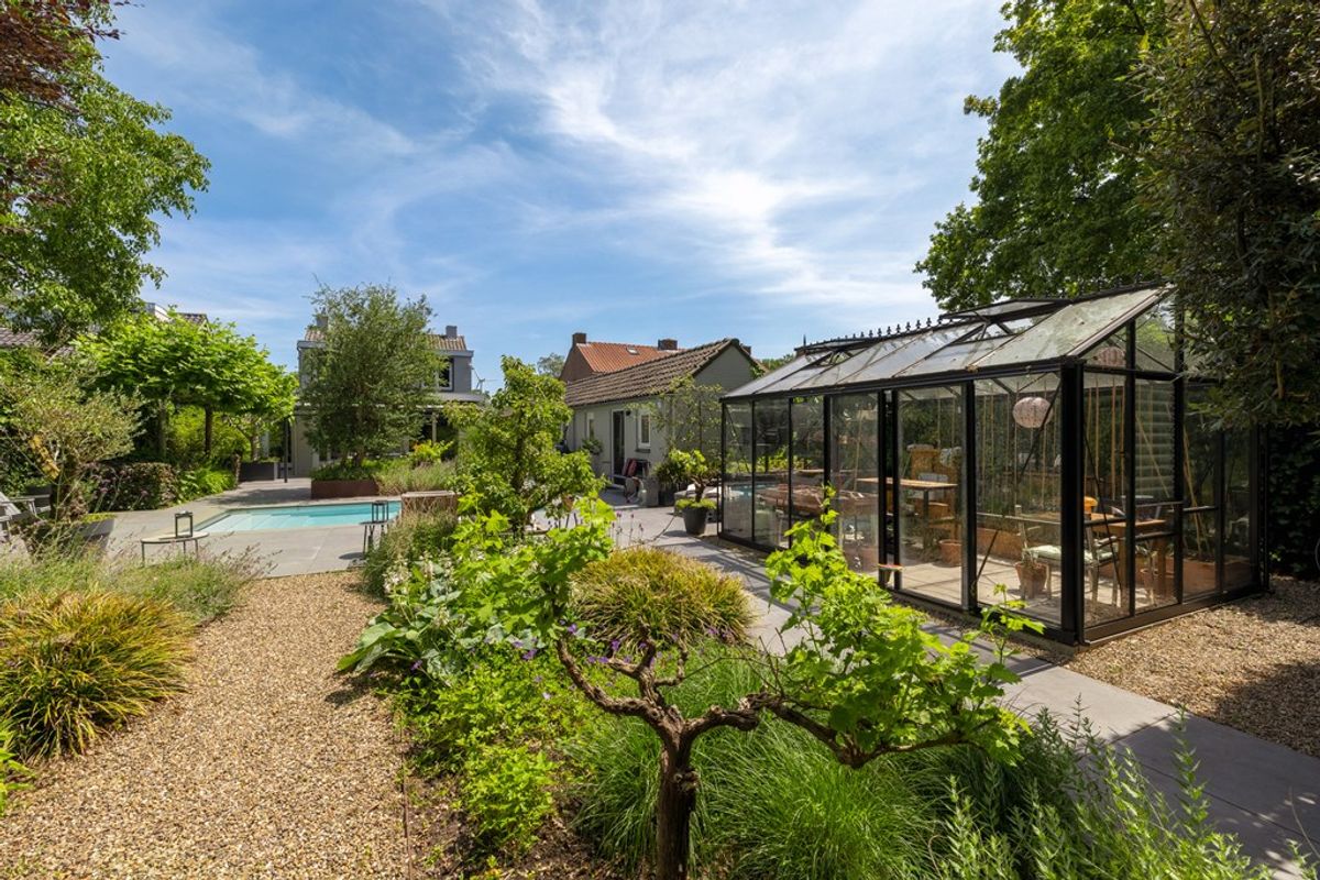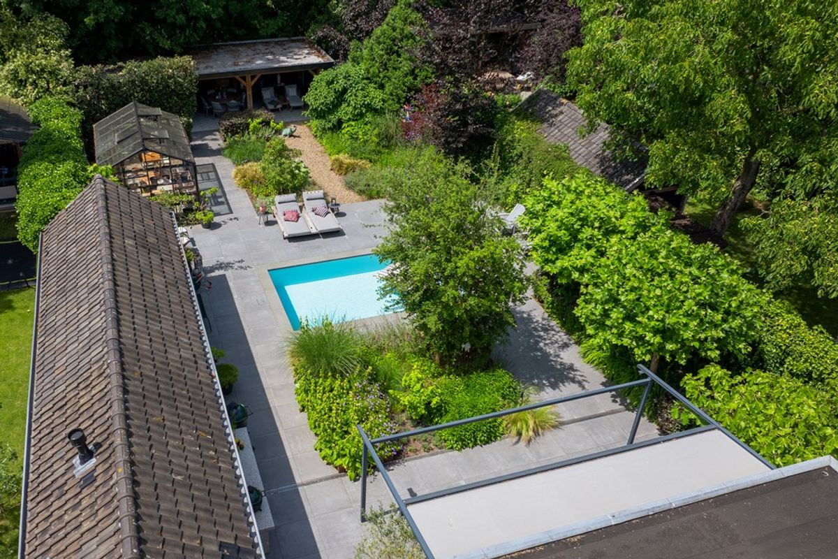 De diepe, fraai aangelegde achtertuin vormt het kloppend hart van het huis. Meerdere zonovergoten terrassen en een schitterend zwembad nodigen uit tot lange zomerdagen met familie en vrienden. Het multifunctionele bijgebouw biedt volop mogelijkheden voor een thuiskantoor, gastenverblijf of hobbyruimte.