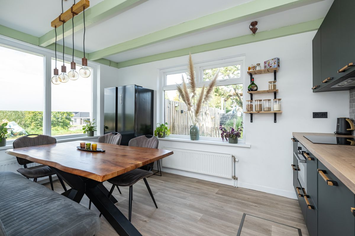 De woonkeuken vormt het hart van het huis en is een ware droom voor kookliefhebbers. Hier vindt u een moderne keukenopstelling met hoogwaardige inbouwapparatuur, veel werkruimte en voldoende plek voor een grote eettafel. Terwijl u kookt, heeft u een mooi uitzicht over de tuin en kunt u gemakkelijk contact houden met uw gezin of gasten. Het geheel ademt warmte, gezelligheid en kwaliteit uit – precies wat u mag verwachten van een woning die recent zo zorgvuldig is gemoderniseerd.
