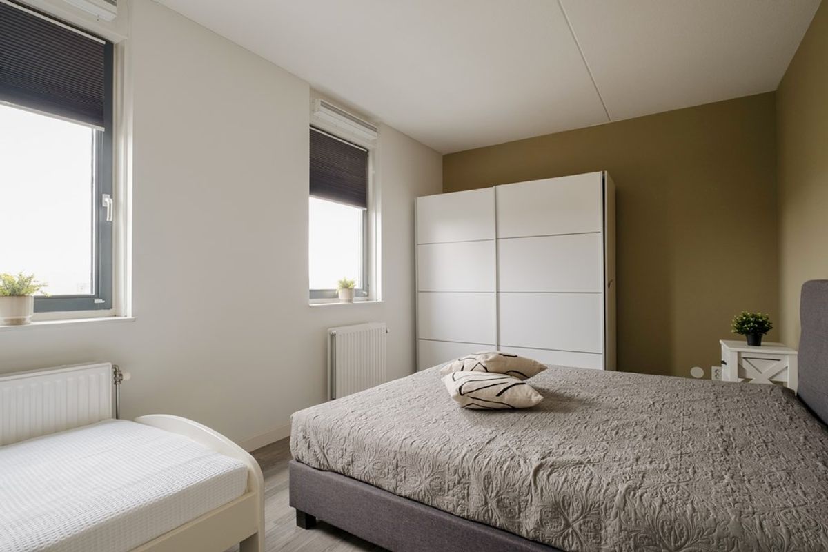 De woning beschikt over een royale woonkamer met open keuken, twee slaapkamers, een moderne badkamer én een zonnig balkon op het westen. Hier geniet u na een drukke werkdag van de middag- en avondzon met vrij uitzicht.