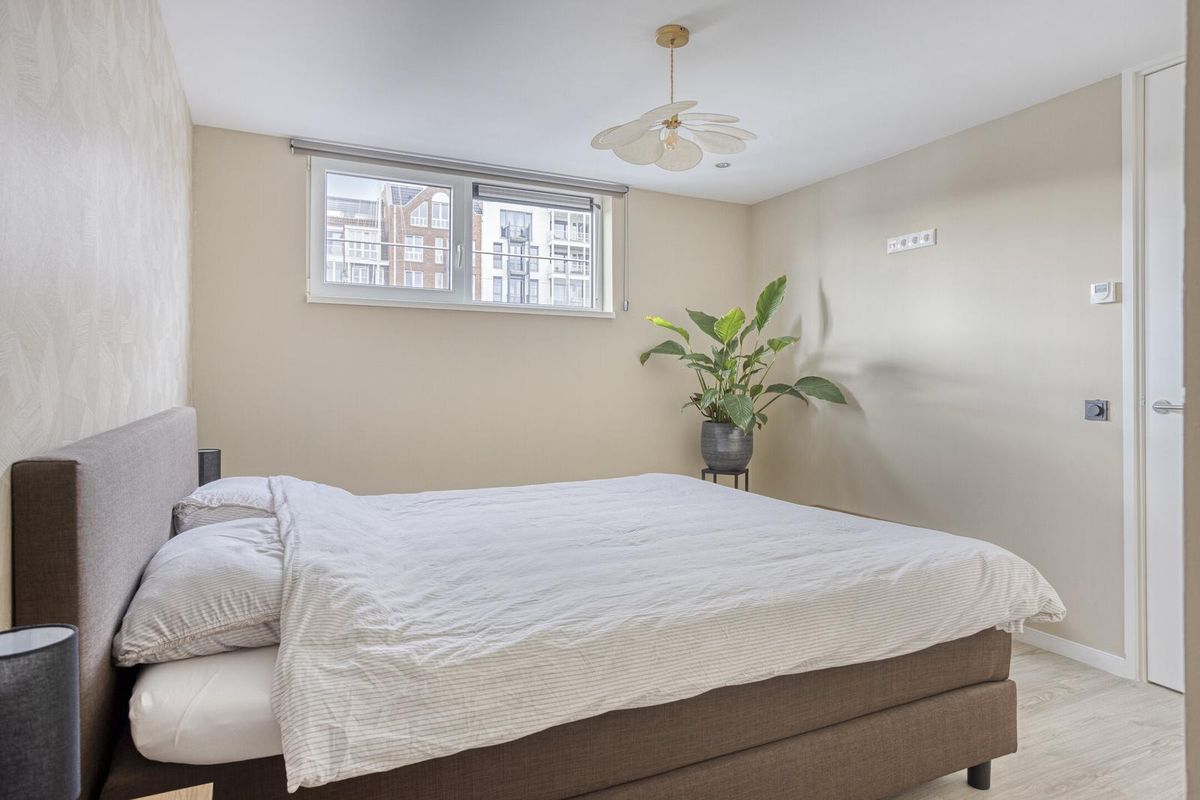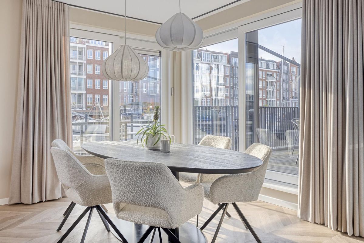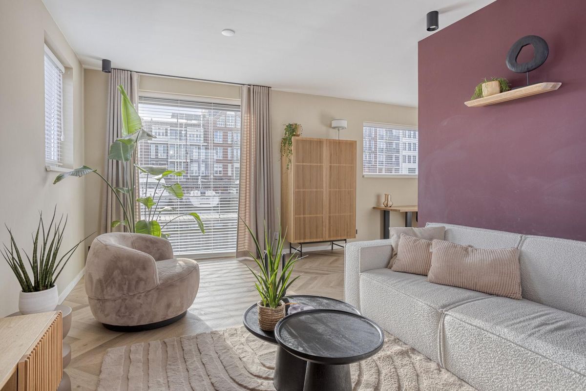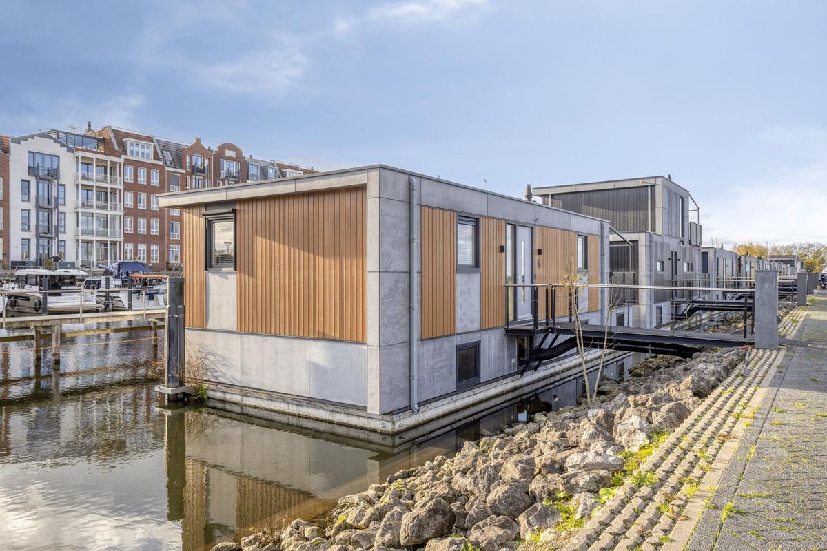 Aan de zijkant van de woning bevindt zich een terras met zicht op de haven, en via een trapje bereik je de vlonder aan het water – met de mogelijkheid om je eigen boot aan te meren. Daarnaast is er een aparte berging aanwezig voor extra opslag.