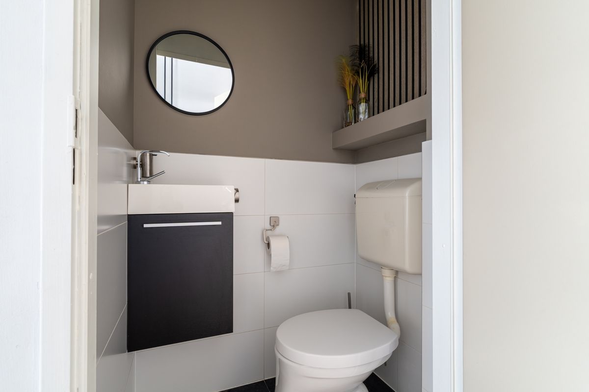 Overloop met vide en ruimte voor een werk- of leeshoek, aparte was-/stookruimte met opstelling van de cv-combiketel (type Bosch, bouwjaar 2009) en aansluitingen voor wasapparatuur. De tweede, royale slaapkamer is voorzien van een inloopgedeelte voor kleding. De badkamer is keurig afgewerkt en recent voorzien van een vernieuwde douche. Verder vind je hier een wastafelmeubel en sanibroyeur toilet.