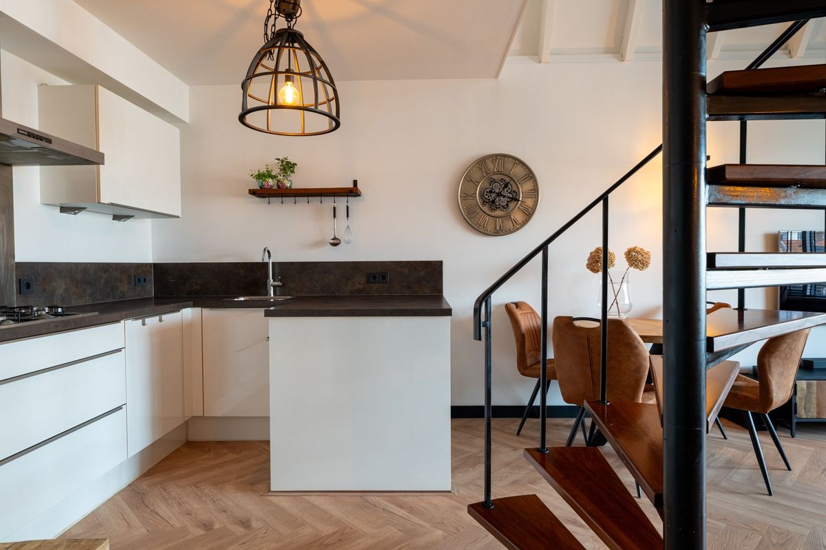 Het appartement is verdeeld over twee woonlagen en combineert comfort met karakter.