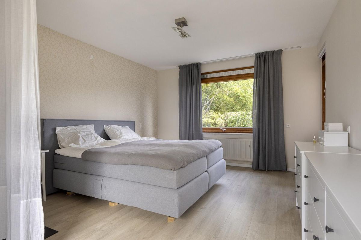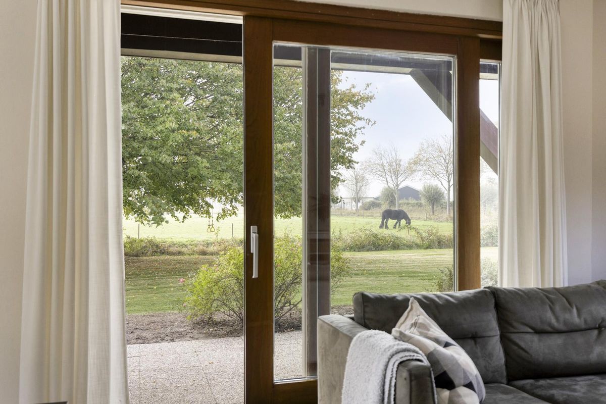 De woning ligt gunstig op het perceel; relatief strak tegen de achterzijde én met de ramen grotendeels aan de tuin-/weidezijde. Zo heb je vanuit de woonkamer, hal en masterbedroom een prachtig weids uitzicht. Doordat de woning L-vormig is geniet je hier ook optimaal van je privacy en kun je een heerlijk terras maken in de luwte.