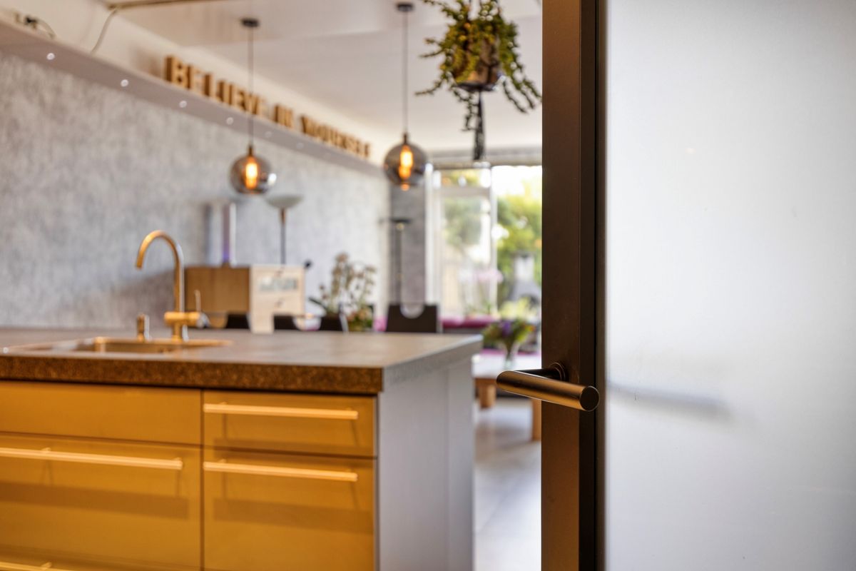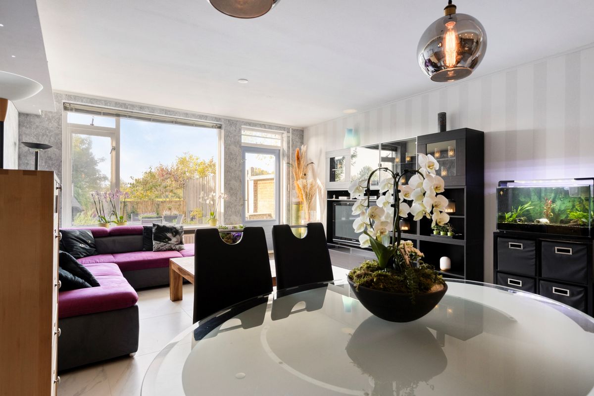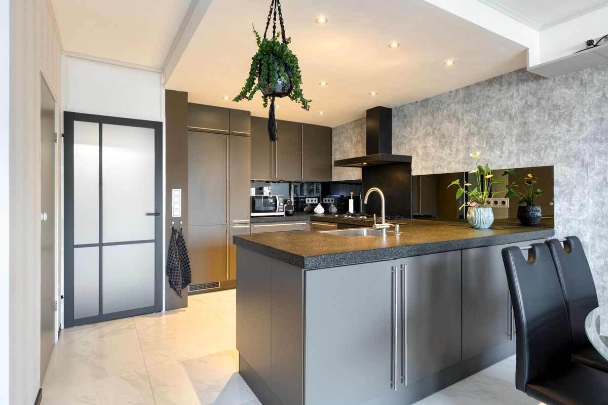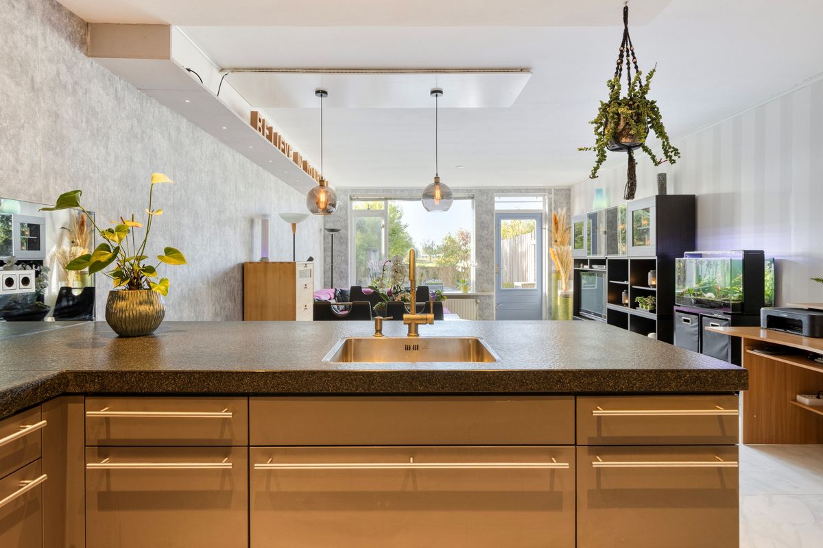 Bij binnenkomst in de woonkamer trekt de keuken direct de aandacht en is een echte blikvanger. De keuken met veel bergruimte is kwalitatief en hoogwaardig afgewerkt. Dankzij het luxe werkblad, de oven, de koel-vriescombinatie en het 5-pits gaskooktoestel (inclusief wokbrander) wordt koken hier een waar plezier. De open opstelling zorgt voor een heerlijk ruimtelijk gevoel en veel lichtinval, waardoor dit een ideale plek is om te koken, eten en samen te zijn. Vanuit de woonkamer heb je bovendien een fijn uitzicht op de tuin, wat zorgt voor een lichte en sfeervolle leefruimte.