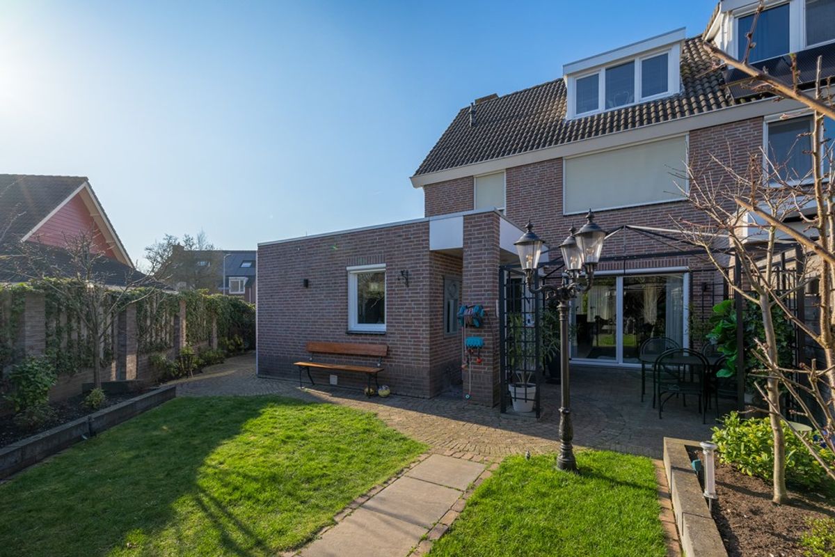 Via de achterzijde bereikt u de tuin met overkapping en beschikt de woning over een praktische achterom ideaal voor fietsen, tuinmateriaal of extra bereikbaarheid.