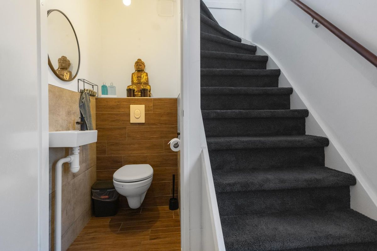 Via de entree met hal, toilet (2022) en trapopgang bereik je de lichte woonkamer met vloerverwarming, gestukadoorde wanden en plafond, mooi pvc vloer en openslaande tuindeuren naar de achtertuin. De moderne keuken (vernieuwd in 2022) is voorzien van een elektrische kookplaat, afzuigkap, koel/vriescombinatie en vaatwasser en heeft een strakke, tijdloze uitstraling.