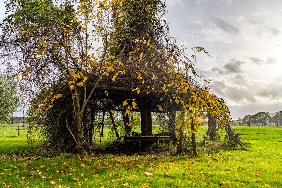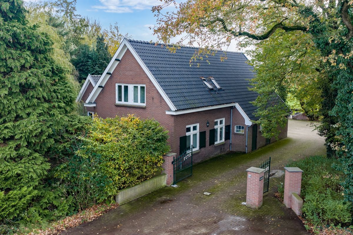 Rondom de woning ligt een fraai aangelegd en verzorgd erf met meerdere terrassen, volwassen bomen en volop privacy. De in 2018 gebouwde garage (6,5 × 5,2 m) met berging en vliering biedt ruimte voor meerdere auto’s en extra opslag. Daarnaast bevinden zich op het erf nog twee karakteristieke schuren van circa 11 × 7,75 m en 4,5 × 9 m met een overkapping, ideaal voor opslag, werkplaats of hobbymatig gebruik.