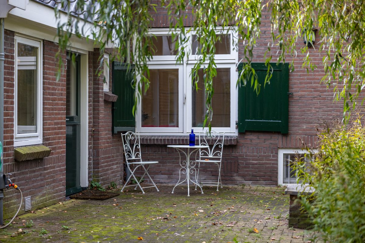 De stijlvolle entree met originele granito vloer en een prachtige houten trap met rode loper zet direct de toon voor de rest van de woning. Vanuit de hal zijn de verschillende vertrekken bereikbaar: een charmante ontvangstkamer, een werk- of slaapkamer met klassieke schouw, de kelder, een toilet, een badkamer met dubbele wastafel, ligbad en separate douche, en een aparte wasruimte.