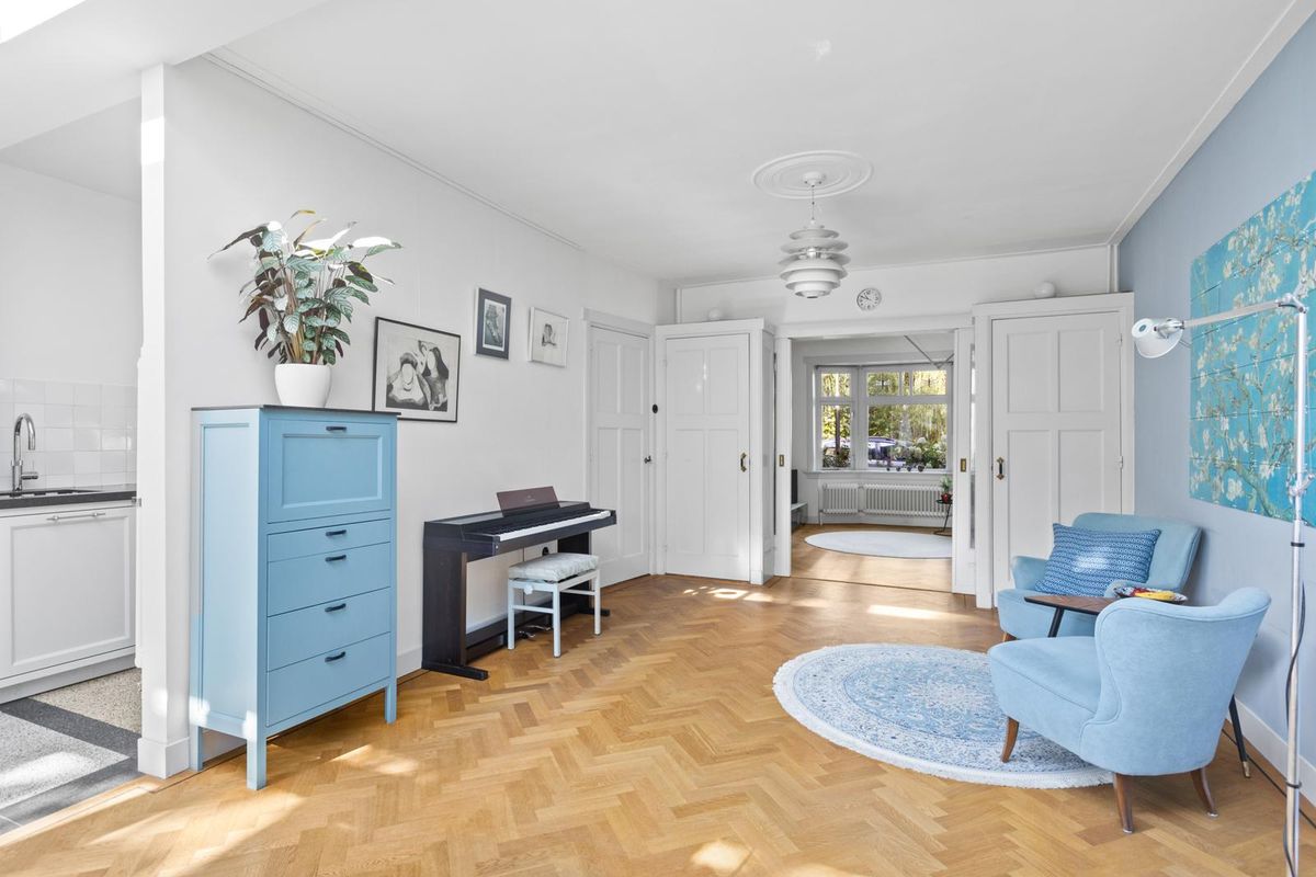 Je komt binnen via de hal met originele granitovloer – een mooie knipoog naar het verleden. Via de eerste deur stap je de voorkamer binnen, waar de erker en het uitzicht op de beek meteen de aandacht trekken. Hier is het heerlijk ontspannen: tv aan, kachel aan, of juist rustig een boek lezen. De en suite schuifdeuren leiden naar de achterkamer, waar de prachtige visgraatvloer en de fijne zithoek direct opvallen. Dankzij de aanbouw uit 2019 is er nu volop ruimte voor een royale eetkamertafel waar je met familie en vrienden lang kunt tafelen. Via de openslaande deuren loopt de eetkamer naadloos over in de tuin, waardoor binnen en buiten één geheel vormen.