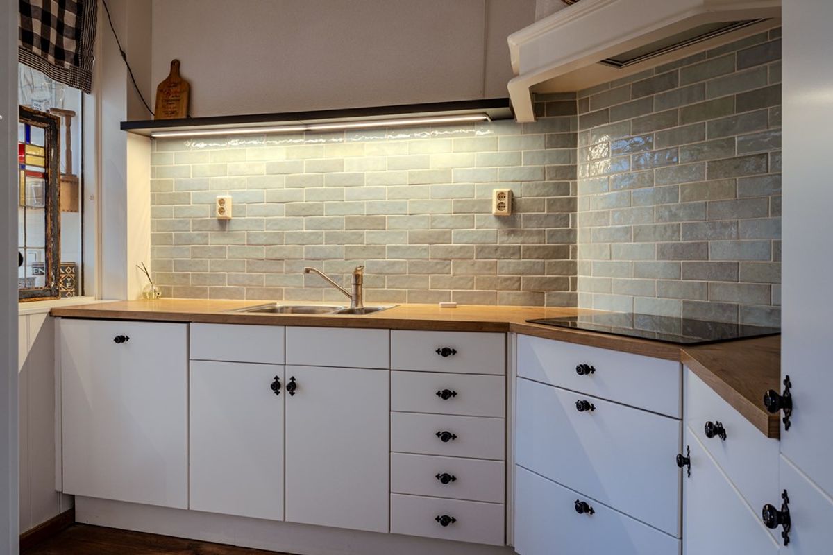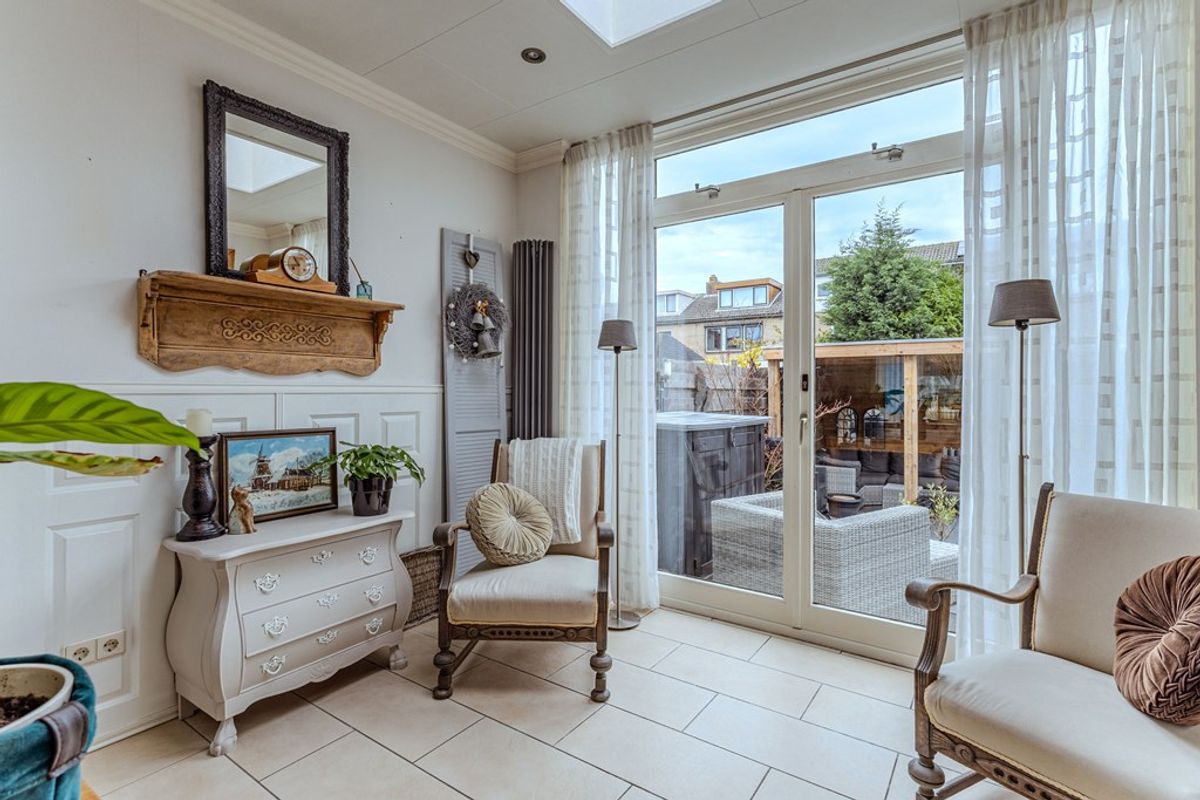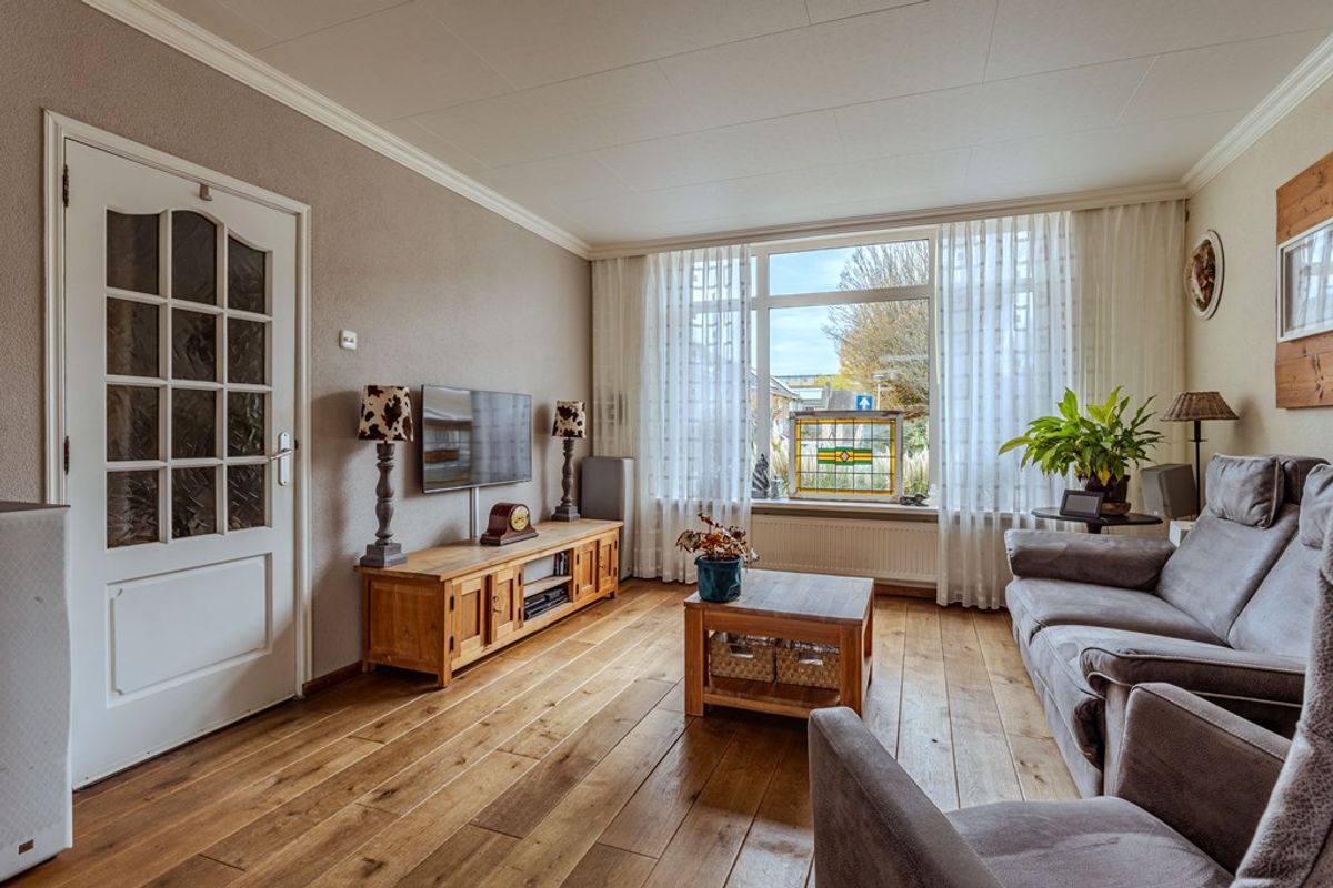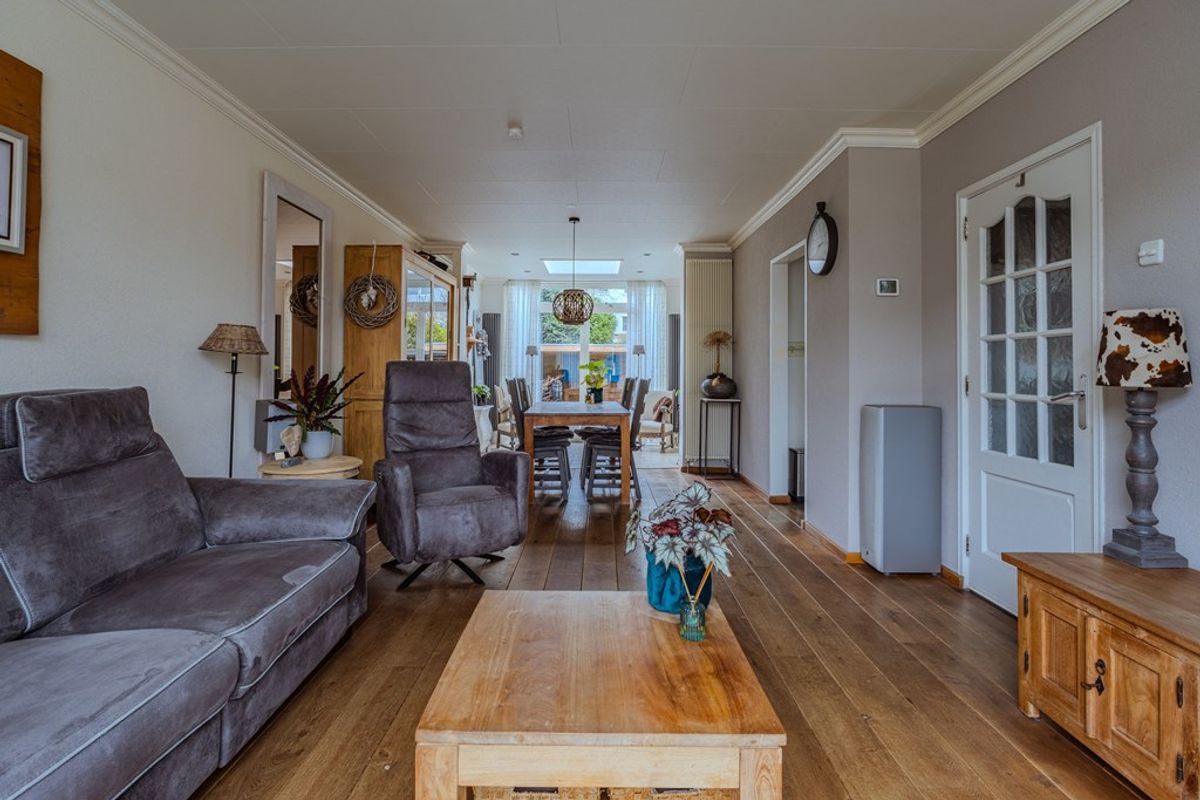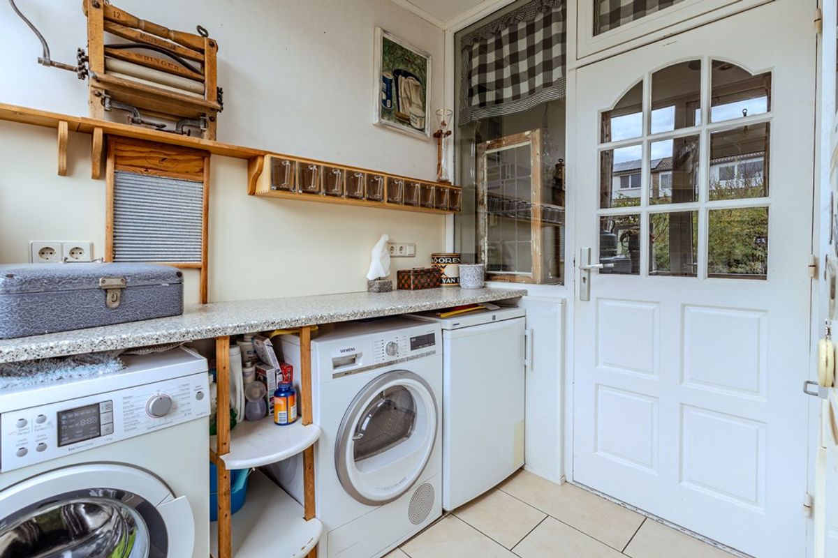 Entree in de hal met garderoberuimte, meterkast, trapkast, de volledig betegelde toiletruimte met zwevend toilet en de trapopgang. De woning is in 2004 aan de achterzijde uitgebouwd en biedt openslaande deuren naar de tuin en een lichtkoepel wat zorgt voor een fijne lichtinval. De natuurlijke scheiding tussen het zit- en het eetgedeelte wordt gevormd door de doorgang naar de keuken. Deze keuken in L-opstelling is door de jaren heen voorzien van nieuwe apparatuur en de frontjes, muurtegeltjes en het aanrechtblad zijn recent vernieuwd. Van hieruit toegang tot de achtergelegen bijkeuken waar zich de witgoedaansluitingen, vaste kastruimte en een garderoberuimte bevinden. Tevens vanuit de bijkeuken toegang tot de achtertuin.