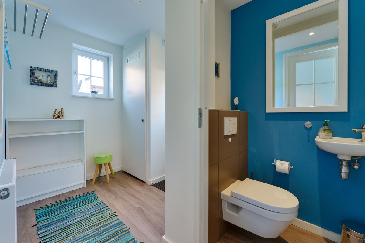 Verder is er een gezellige chill-out zone, perfect om te relaxen met een boek of als speelruimte voor de kinderen. De royale overloop met dakraam biedt extra mogelijkheden, bijvoorbeeld als werk- of hobbyplek. Hier is ook de wasmachine netjes weggewerkt.
