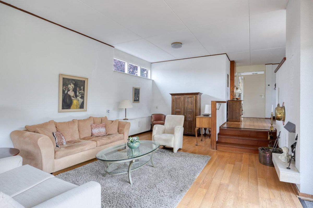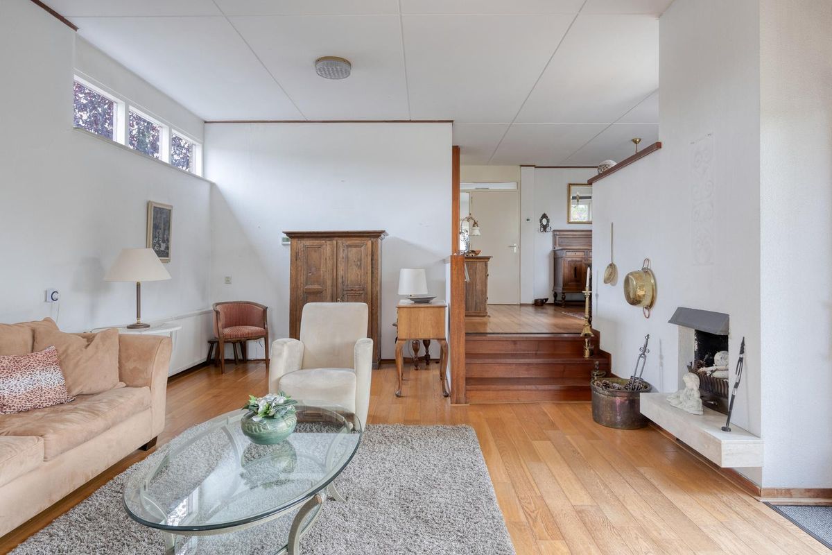 * Royale split-level living van ca. 55 m2 bestaand uit een woonkamer, dichte keuken en eetkamer. De woonkamer is voorzien van parket vloer, grote glazen schuifpui en sfeervolle open haard. Door de grote glazen gevel heeft u hier veel lichtinval en een prachtig zicht op de tuin!
