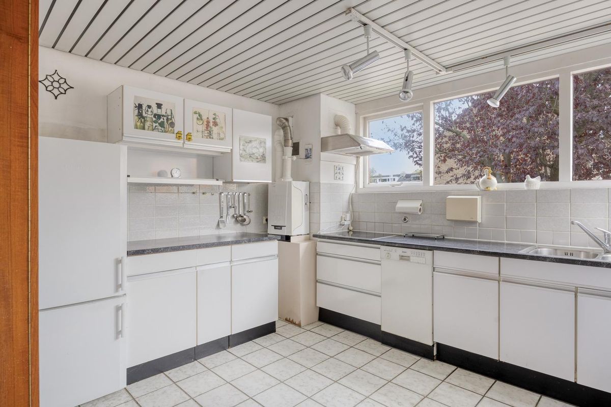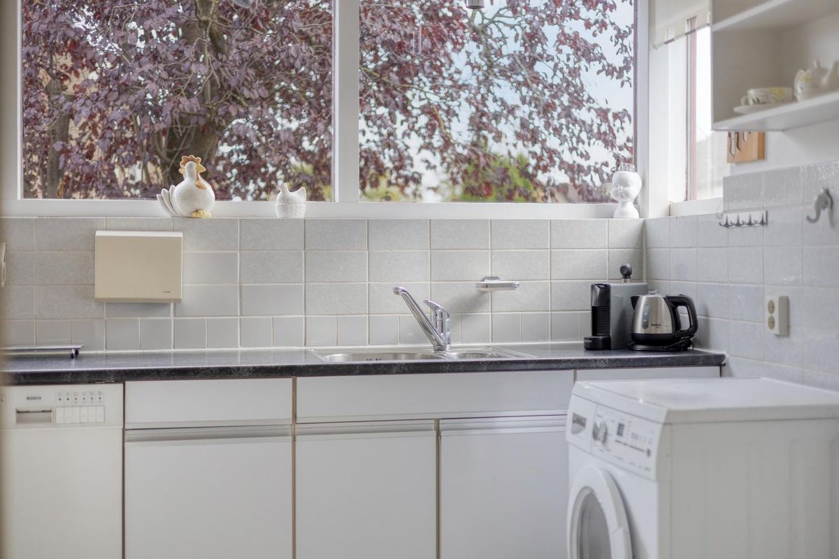 * Dichte keuken voorzien van plavuizen vloer, kookplaat, afzuigkap, vaatwasser, aansluiting wasmachine-/droger en opstelplaats van de CV-ketel.