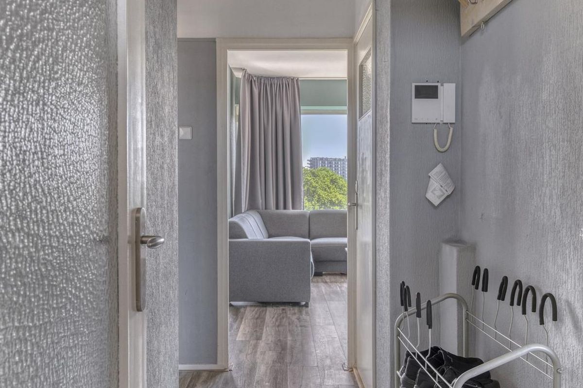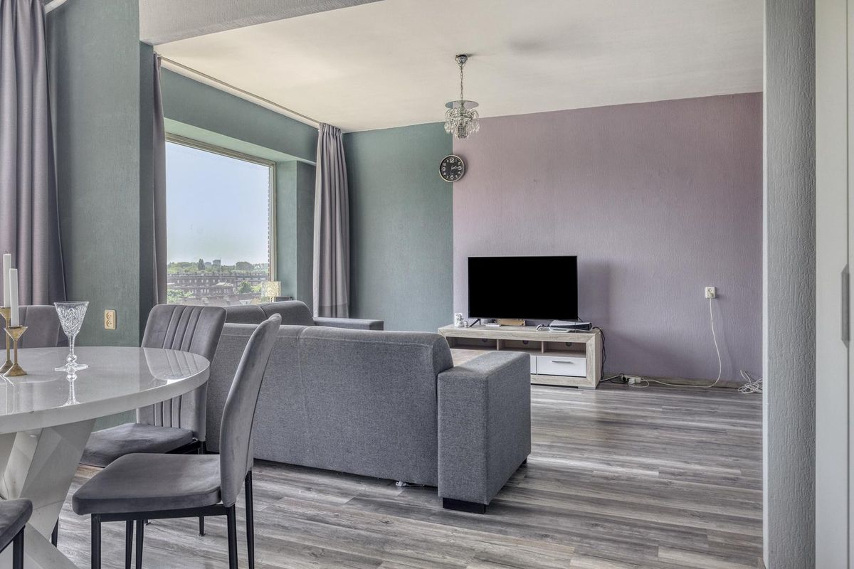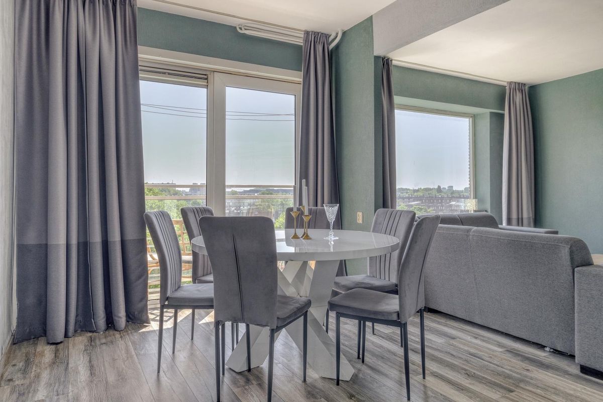 - Woonkamer: De woonkamer beschikt over grote raampartijen die een fraai uitzicht op de groene omgeving bieden en veel daglicht binnenlaten. Aangrenzend bevindt zich een open ruimte die ideaal is als eetkamer en toegang biedt tot het balkon. De laminaatvloer en neutrale wandkleuren zorgen voor een strakke afwerking. Dankzij de open indeling is er volop ruimte voor een comfortabele zit en eethoek.