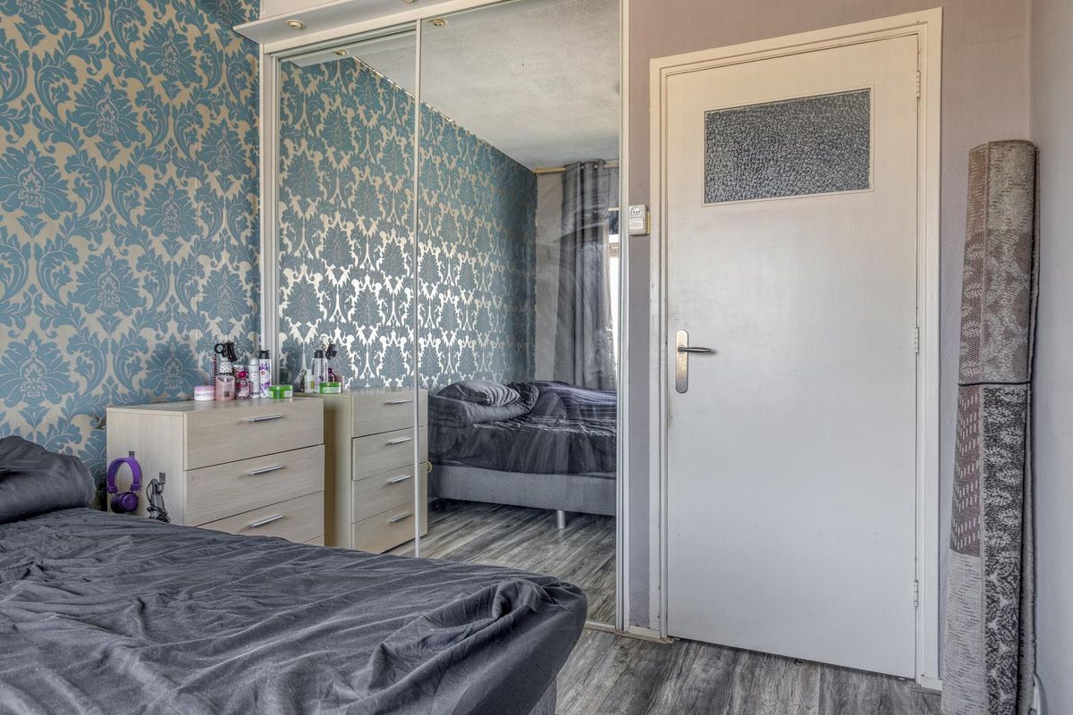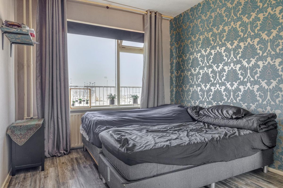 -Slaapkamer: De slaapkamer aan de voorzijde is voorzien van een nette laminaatvloer met warme houtlook. Het grote raam zorgt voor veel daglicht en een fraai uitzicht over de stad. Daarnaast is de kamer uitgerust met een praktische kast, wat extra opbergruimte biedt. Een lichte en functionele ruimte met een prettige sfeer.