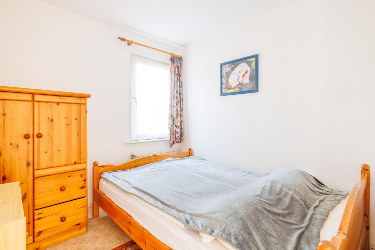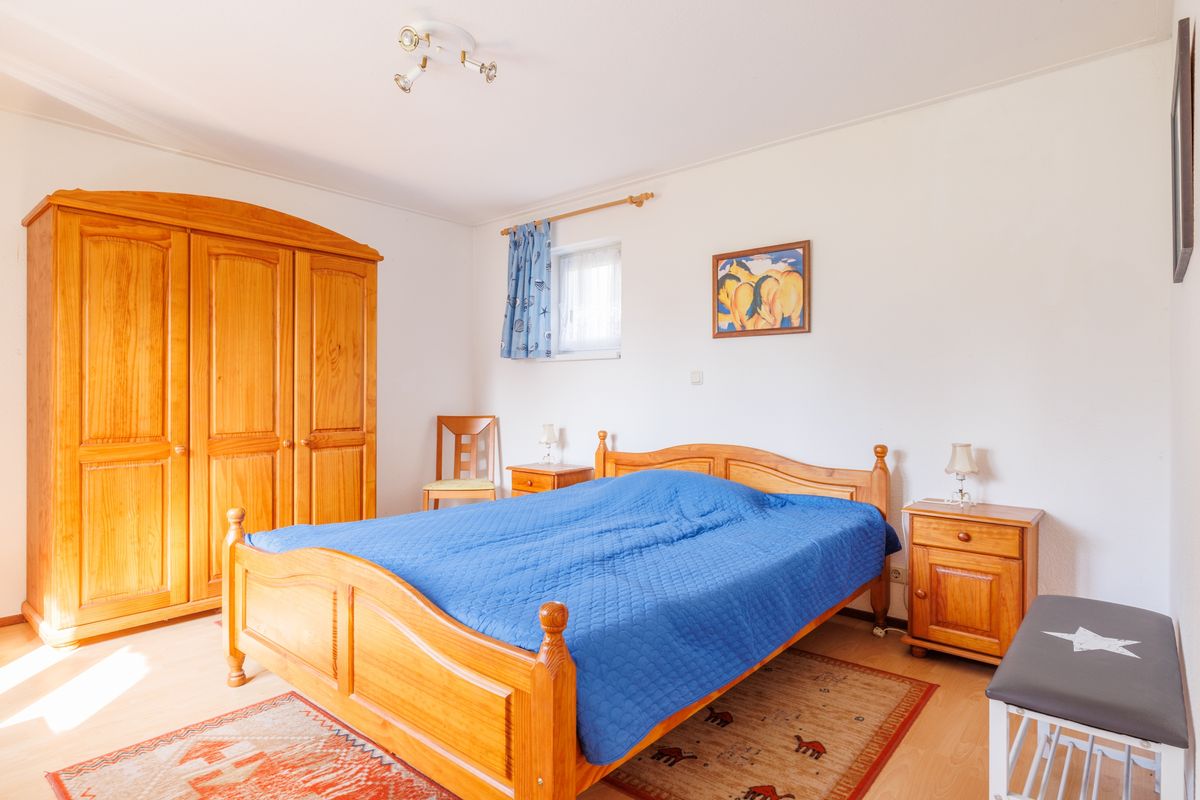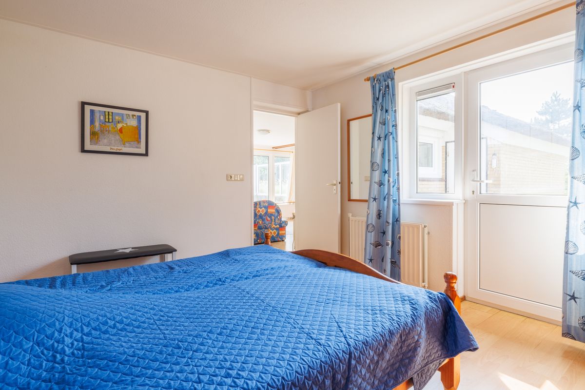 - Slaapkamer 1 met toegang tot het terras aan de achterzijde van het huis.