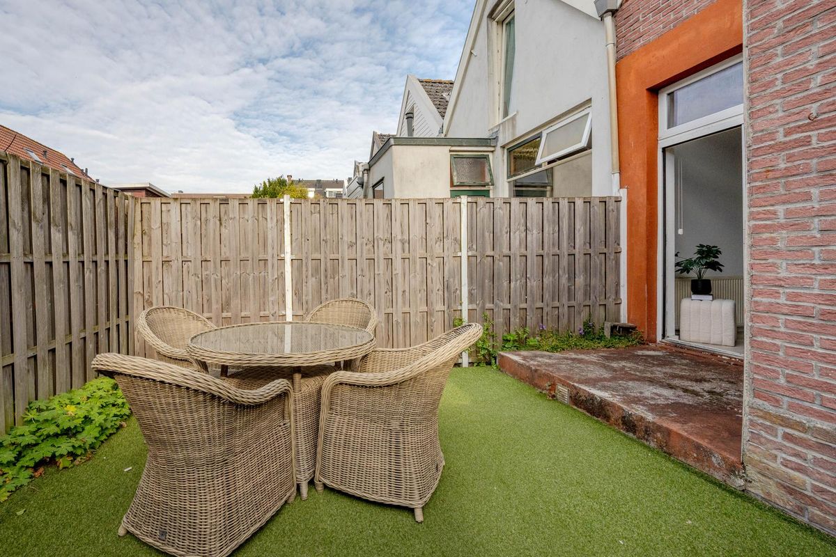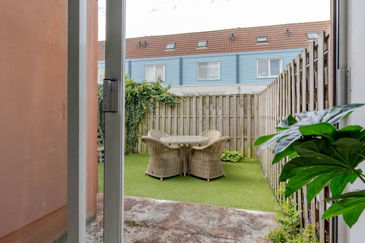 * Knusse achtertuin (ca. 22 m²) gelegen op het zuidwesten voorzien van kunstgras en een nette houten schutting.