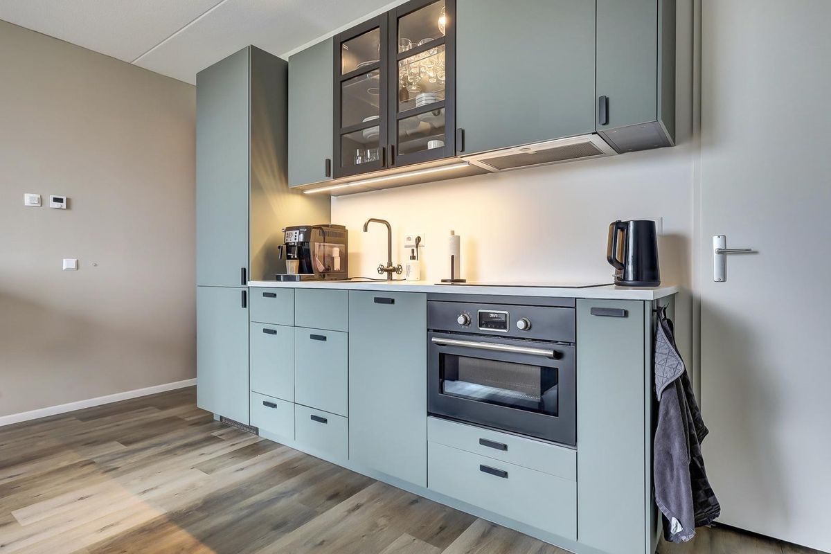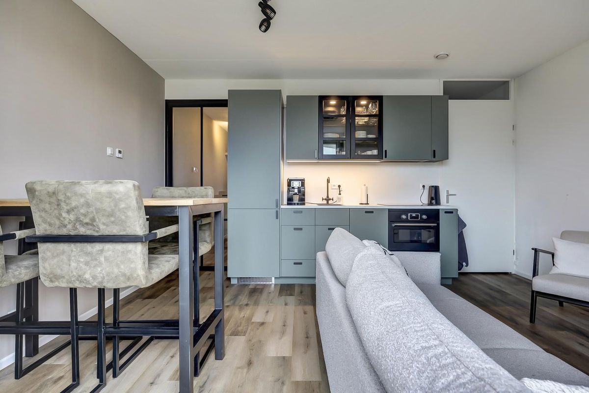 Vervolgens betreed je de lichte en sfeervolle woonkamer. Dankzij het open concept vormt de keuken één geheel met het woongedeelte, waardoor het koken een sociale en gezellige bezigheid wordt! De open keuken is volledig ingericht met moderne inbouwapparatuur, waaronder een koelkast, vriezer, vaatwasser, inductiekookplaat en combi-magnetron.