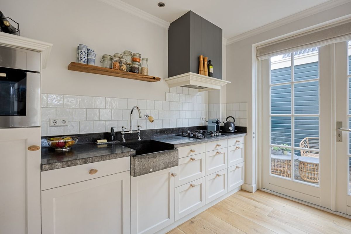 Halverwege de living heeft u royaal de ruimte om uw eethoek te plaatsen! De rechte keuken-opstelling is ingericht met een Belgisch hardstenen werkblad en gootsteen. U kookt op een vierpits gaskookplaat met wokbrander, onder een schouw met afzuiging. De (brug)kraan is in 2025 vernieuwd. De keuken is verder voorzien van een vaatwasser (2022), koelkast (2018) en een combimagnetron met grill- en crisp-functie. De openslaande deuren geven u toegang tot de knusse tuin.