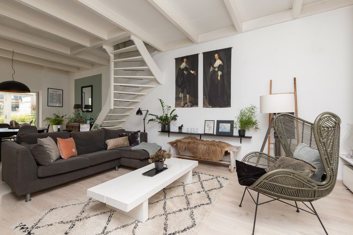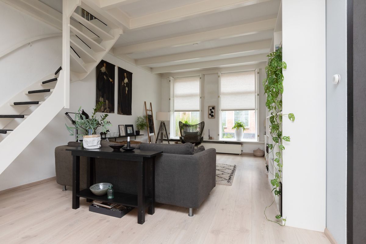 * Sfeervolle woonkamer met balkenplafond;