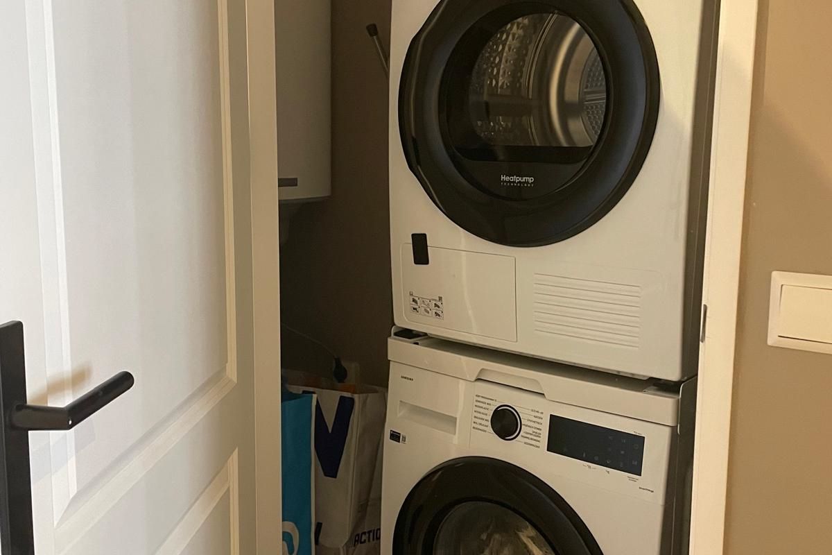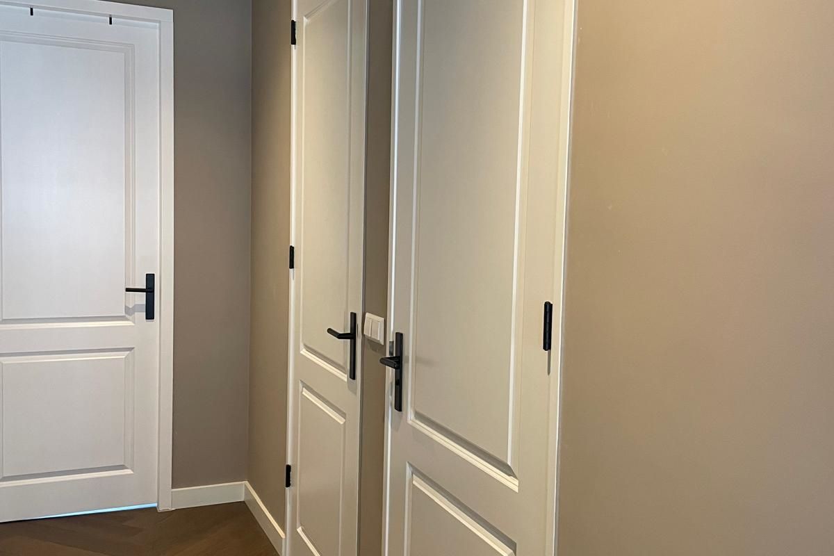 Eerste verdieping: eigen entree, gang. Aan de voorzijde van de woning bevindt zich de woonkamer met luxe open keuken voorzien van inbouwapparatuur waaronder een inbouw koelkast, vriezer met 3 laden, combi oven magnetron, spoelbak, cooker, 4 pits inductie kookplaat met ingebouwde afzuiginstallatie en een vaatwasser. Dankzij de grote ramen veel lichtinval in de woonkamer. De moderne luxe badkamer is voorzien van een zwevend toilet, wastafelmeubel, vloerverwarming en luxe inloopdouche. Aparte kast met wasmachine en droger opstelling, mechanische ventilatie en grote boiler voor warm water. Masterbedroom aan de achterzijde van de woning met deur naar het balkon gesitueerd op het zonnige noordwesten. Slaapkamer 2 tevens aan de achterzijde van de woning en ook vanuit deze slaapkamer is er toegang tot het balkon.
