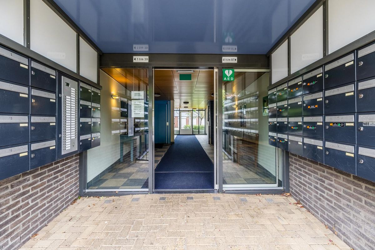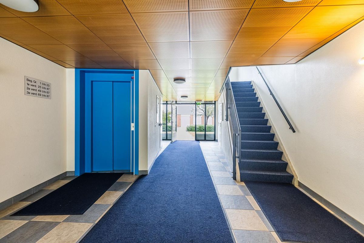 Entree met brievenbussen, videofoon en de trap- en liftopgang naar de verdiepingen.