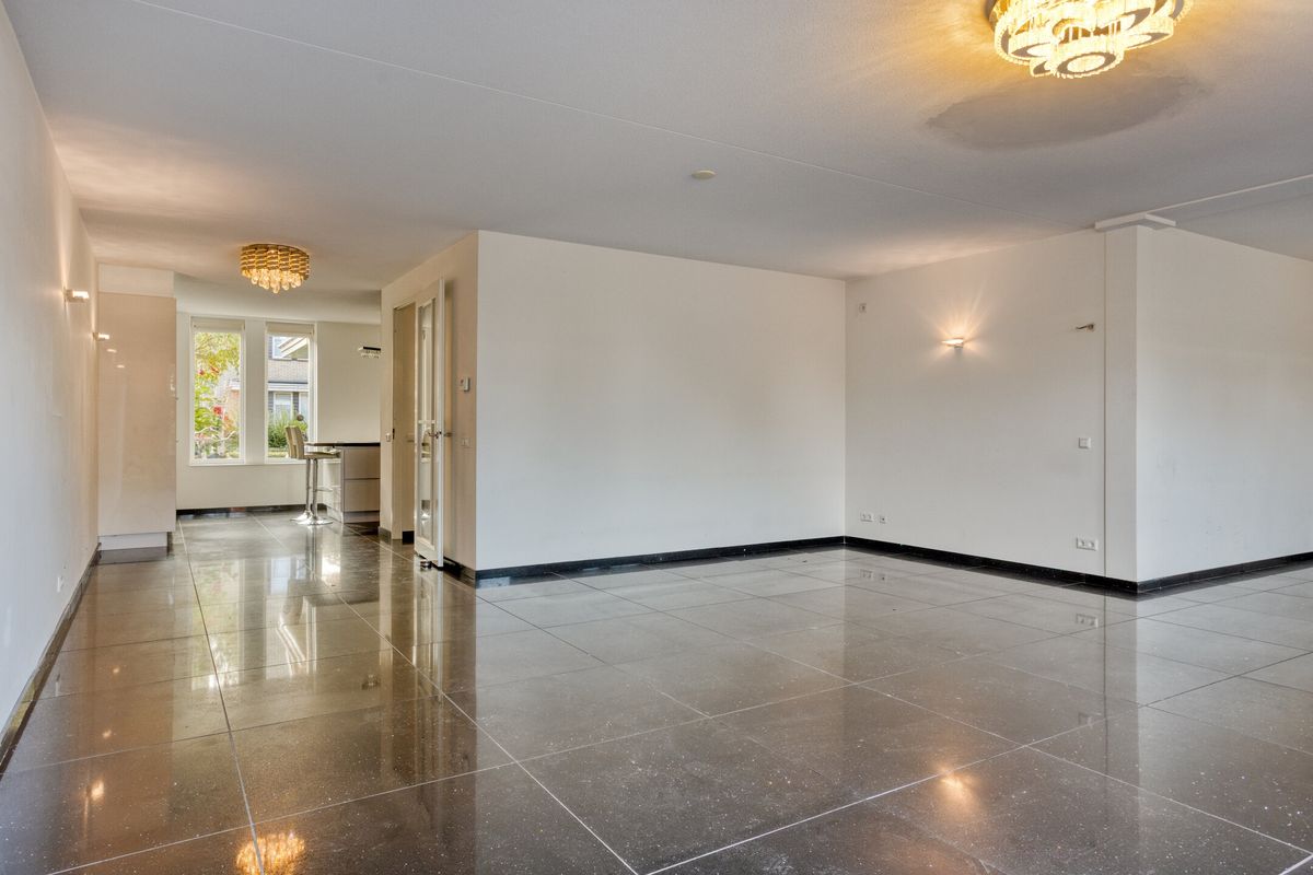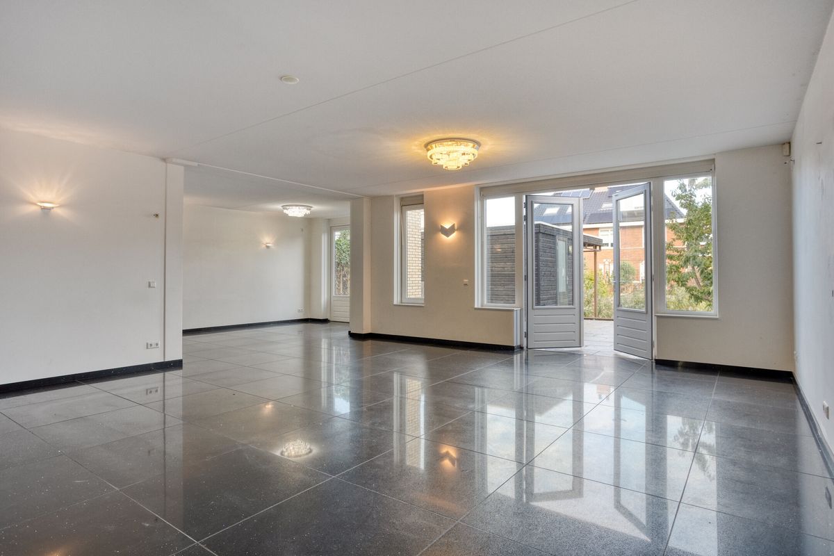 De woonkamer verrast u door zijn lengte en ruimte. De huidige bewoners hebben een deel van de garage bij de leefruimte betrokken, waardoor er een extra groot woongedeelte is ontstaan. Openslaande deuren zorgen voor veel lichtinval en een natuurlijke verbinding met de tuin.