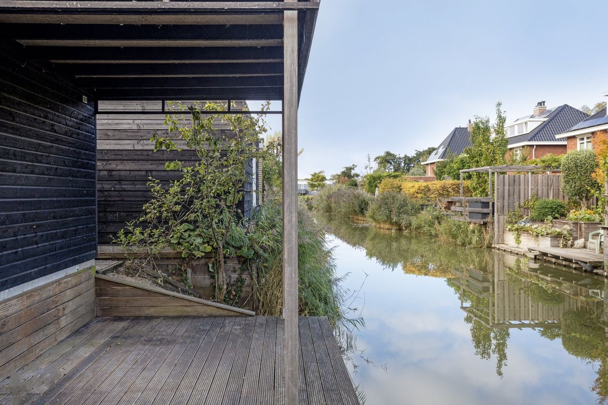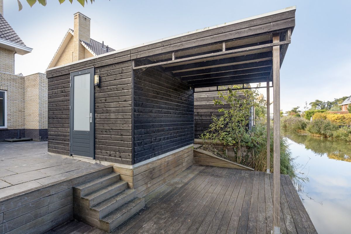 De achtertuin is een plek om echt te ontspannen. Altijd ergens zon, een terras voor lange zomeravonden en een eigen steiger aan het water. Ideaal om van het buitenleven te genieten. De tuin is bovendien voorzien van een ruime schuur, perfect voor werkplek, tuinspullen of extra opslag. De garage zelf is nog bereikbaar via openslaande deuren vanaf de oprit en doet nu dienst als praktische berging en fietsenstalling.