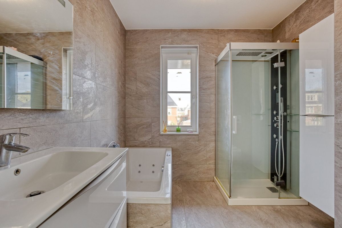 De tweede verdieping biedt nog eens twee ruime slaapkamers en een tweede badkamer met infrarood stoomcabine en badkamermeubel. Daarnaast vindt u hier de was- en stookruimte, met de mogelijkheid om een derde toilet te realiseren. Op de overloop is via een luik met vlizotrap toegang tot de vliering, ideaal als extra bergruimte.