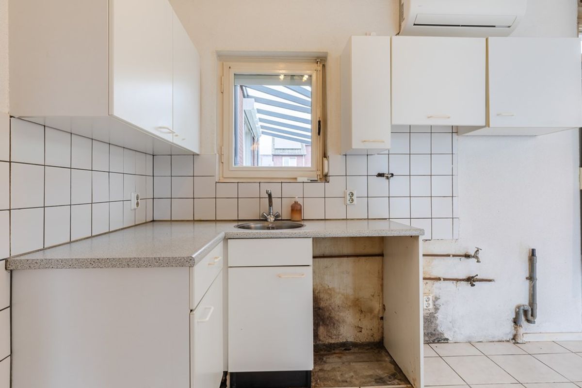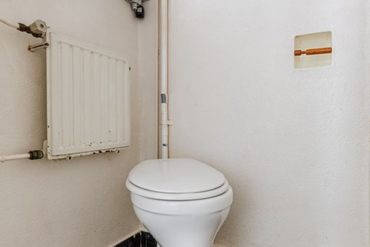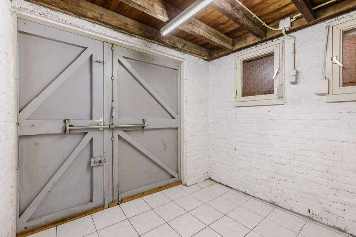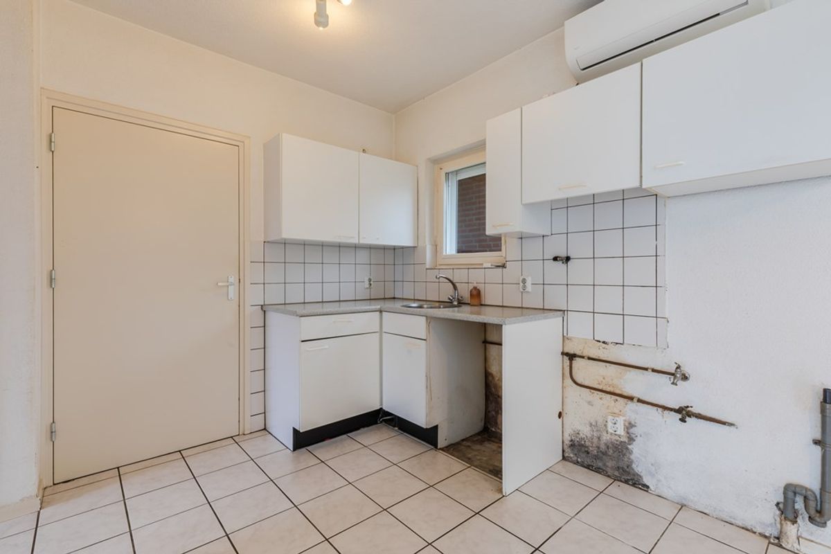 Bij binnenkomst tref je de entree met toilet, waarna je toegang hebt tot de eenvoudige open keuken (6 m²) en de ruime woonkamer van ca. 27 m². De woonkamer biedt mogelijkheden voor het realiseren van een schouw, wat extra sfeer kan toevoegen. Via een tussenhal bereik je de berging (6 m²) en de ruime bijkeuken (8 m²) met directe toegang tot de achtertuin.