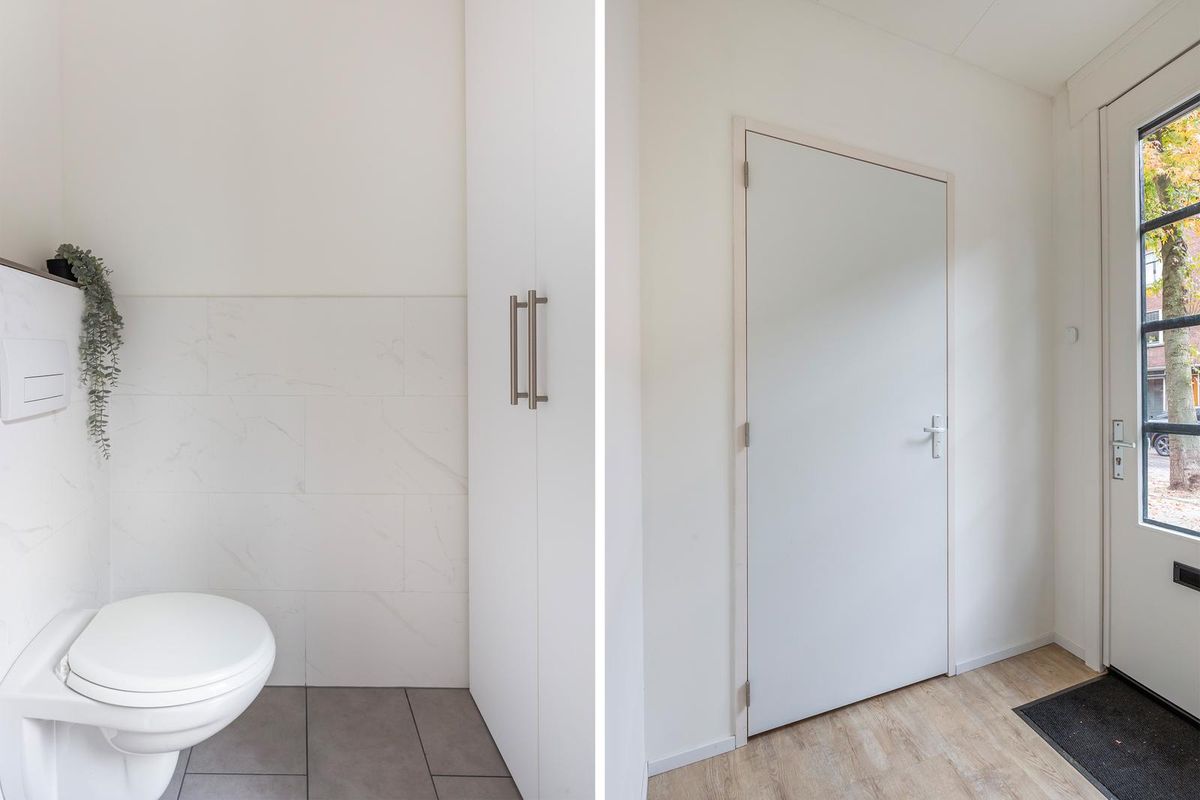 Via de voordeur kom je binnen in een strak afgewerkte hal. Rechts vind je direct de toiletruimte. Links stap je de lichte woonkamer in, een ruimte die meteen uitnodigt.