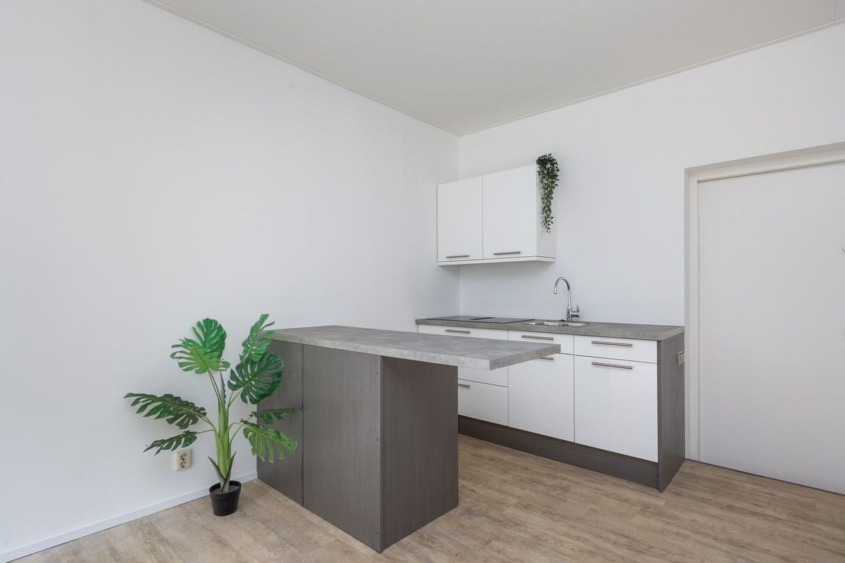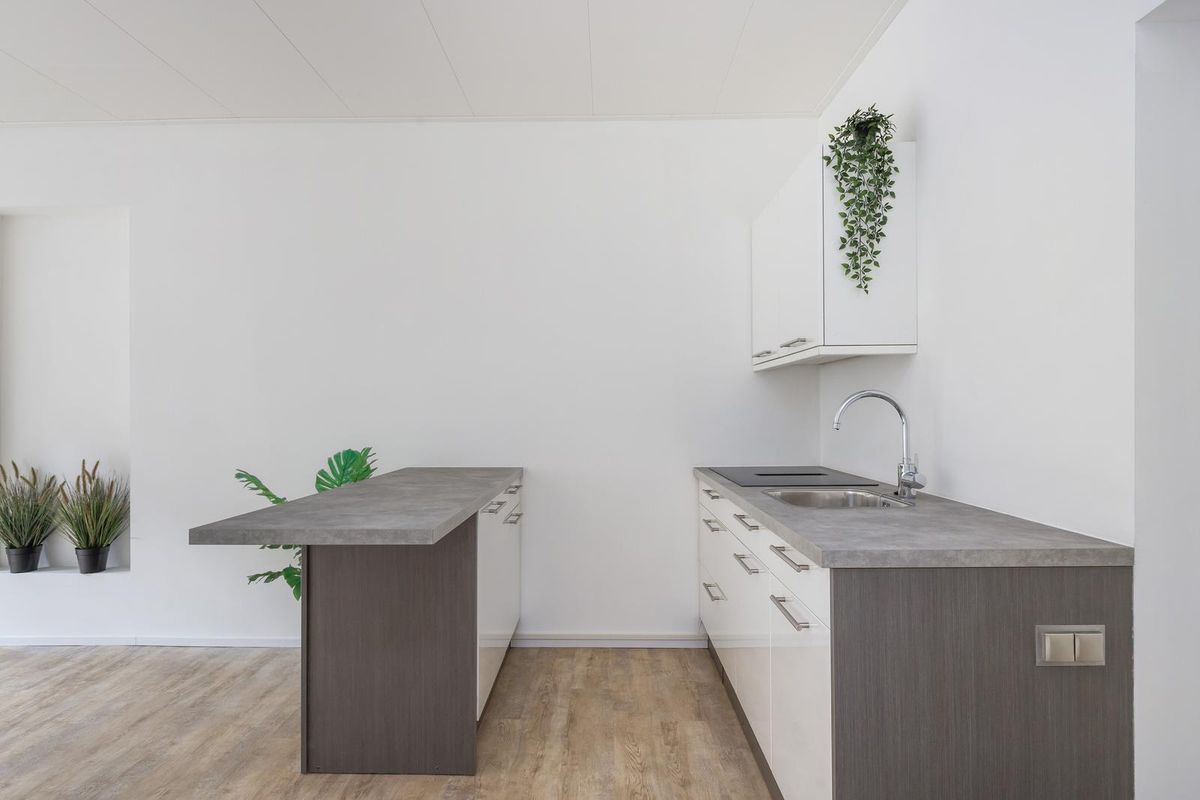 De woonkamer is licht en uitnodigend, met karakteristieke ramen aan de voorzijde van de woning die vroeger deel uitmaakten van de garagedeur. Het robuuste houtwerk en het vele glas geven de ruimte een eigen uitstraling én laten een zee van daglicht binnen. De ruimte biedt volop mogelijkheden voor een gezellige setting, met een leuk nisje in de muur als sfeervol detail. De open keuken sluit mooi aan bij de woonkamer: voorzien van een inductieplaat, wasbak, voldoende kastruimte en een los blok met koelkast en ruimte voor een vaatwasser. Ideaal voor wie houdt van samen koken én gezellig samenzijn.