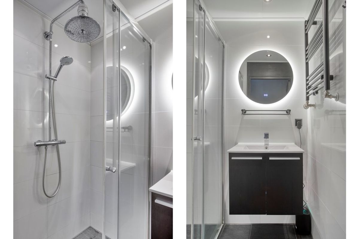 Ook de badkamer is strak en modern afgewerkt, met een frisse uitstraling en kwalitatieve materialen. De separate toiletruimte is in dezelfde stijl doorgevoerd, wat zorgt voor een mooi geheel. De woning beschikt daarnaast over twee comfortabele slaapkamers en is volledig voorzien van een nette laminaatvloer, wat bijdraagt aan het instapklare karakter.