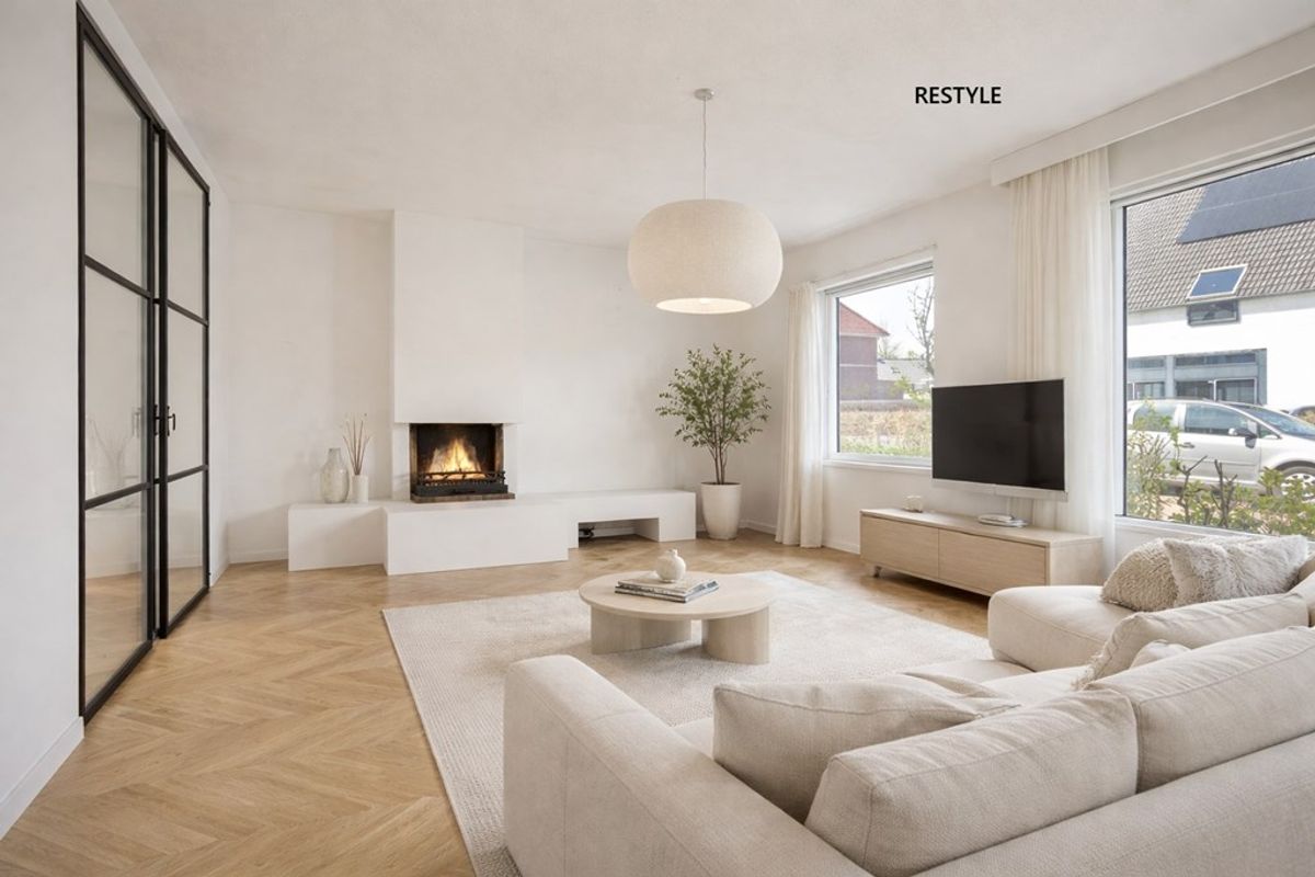 De woonkamer biedt u een heerlijke, lichte leefruimte. Dankzij de grote raampartijen geniet u hier van een prettige lichtinval en een open sfeer. De ruimte is royaal opgezet en leent zich perfect voor het creëren van een comfortabele zithoek en een gezellige eethoek. De haard fungeert als echte eyecatcher en zorgt voor extra warmte en sfeer. Via de openslaande deuren staat u in directe verbinding met de tuin, wat het binnen- en buitenleven naadloos in elkaar laat overlopen.
