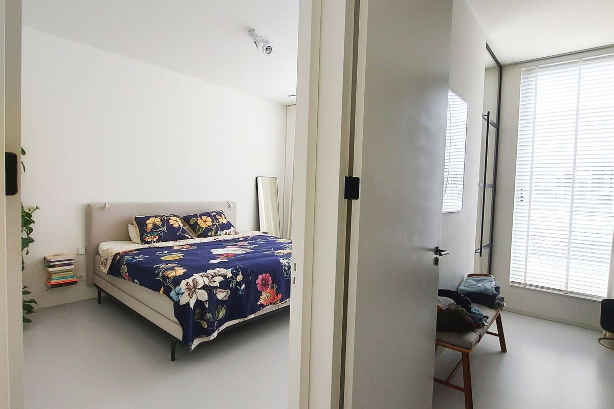 Overloop. Zeer ruime slaapkamer aan voorzijde. Luxe badkamer met inloopdouche, hangend toilet en wastafel. Ruime slaapkamer aan de achterzijde met een walk-in closet en toegang tot het dakterras (Zuiden).