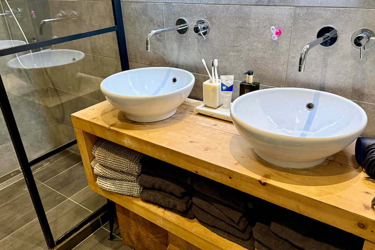 The property features a bright and spacious living room with elegant parquet flooring and contemporary furnishings. The modern open-plan kitchen is equipped with a cooking island and high-quality built-in appliances, making it ideal for both everyday living and entertaining.