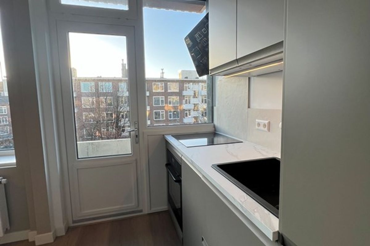 De keuken is voorzien van een moderne keuken met onder andere een koelkast met vriesvak, oven, kookplaat en vaatwasser. De keuken biedt toegang tot het balkon aan de voorzijde.
