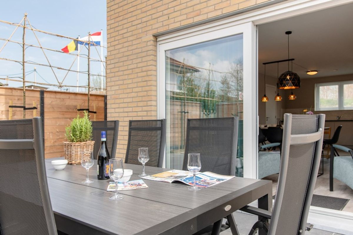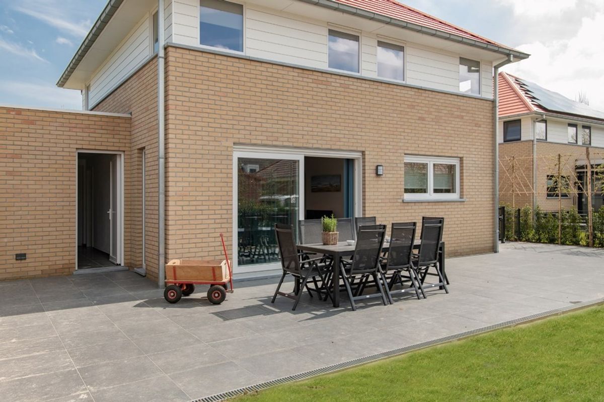 Tuin rondom de woning met terras op het westen zodat u in de middag en avond heerlijk kunt genieten van de zon. Er is een oprit voor de auto en parkeergelegenheid voor meerdere auto’s op eigen terrein aan de voorkant van de woning.