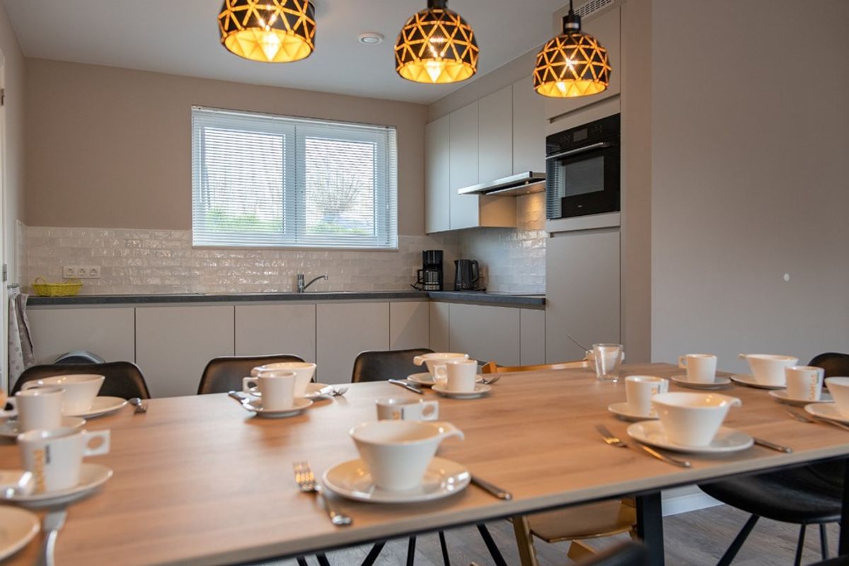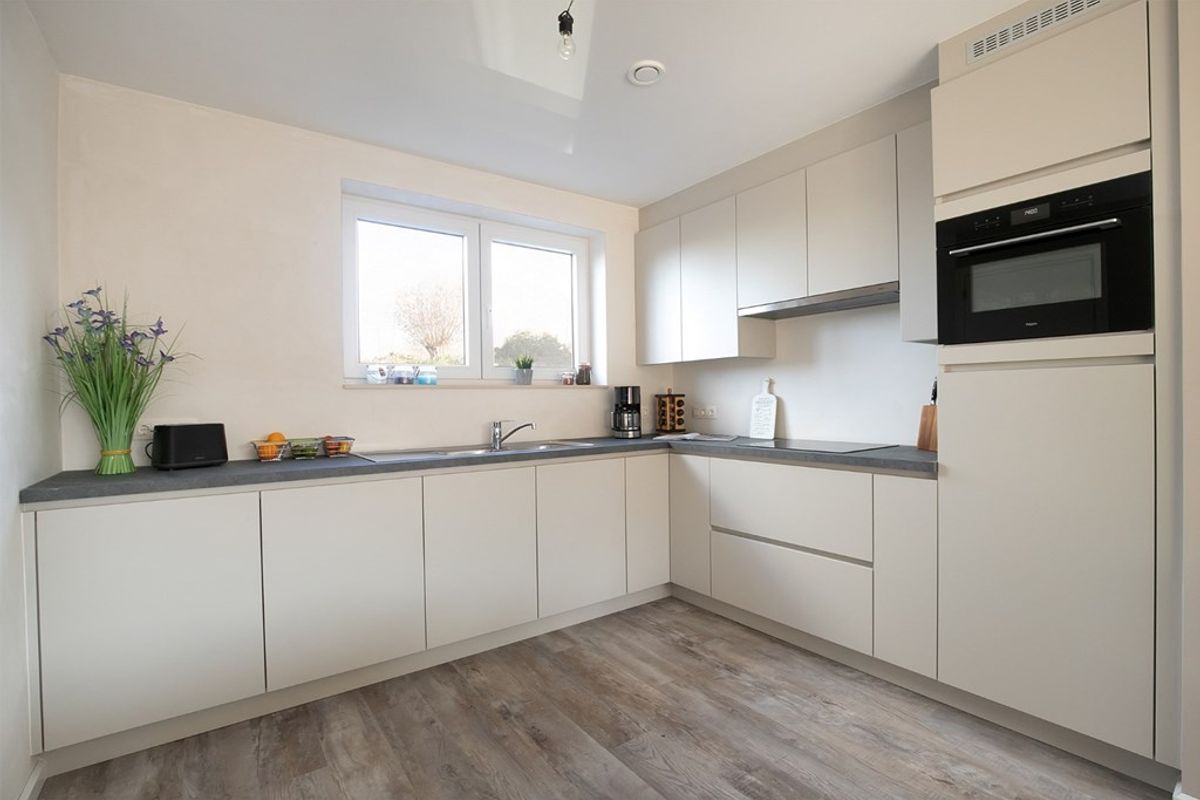 Naast de keuken bevindt zich een ruime bijkeuken met wasmachine, droger en diepvries. Deze ruimte heeft zowel aan de voorkant als achterkant een deur naar buiten waardoor deze ruimte ook prima gebruikt kan worden voor het stallen van (elektrische) fietsen en het voor het opbergen van huishoudelijke spullen en eventueel tuinmeubelen.