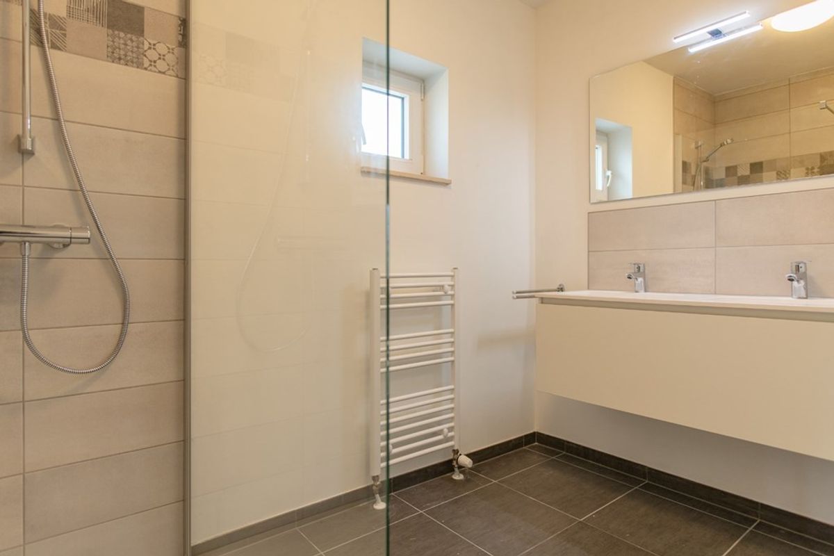 Overloop met toegang tot 3 ruime slaapkamers. Er is een 2e badkamer met inloopdouche, ligbad en dubbele wastafel. Tevens is er een apart toilet met fonteintje.