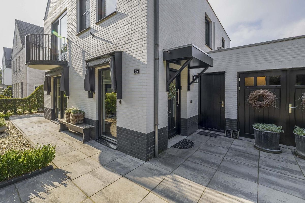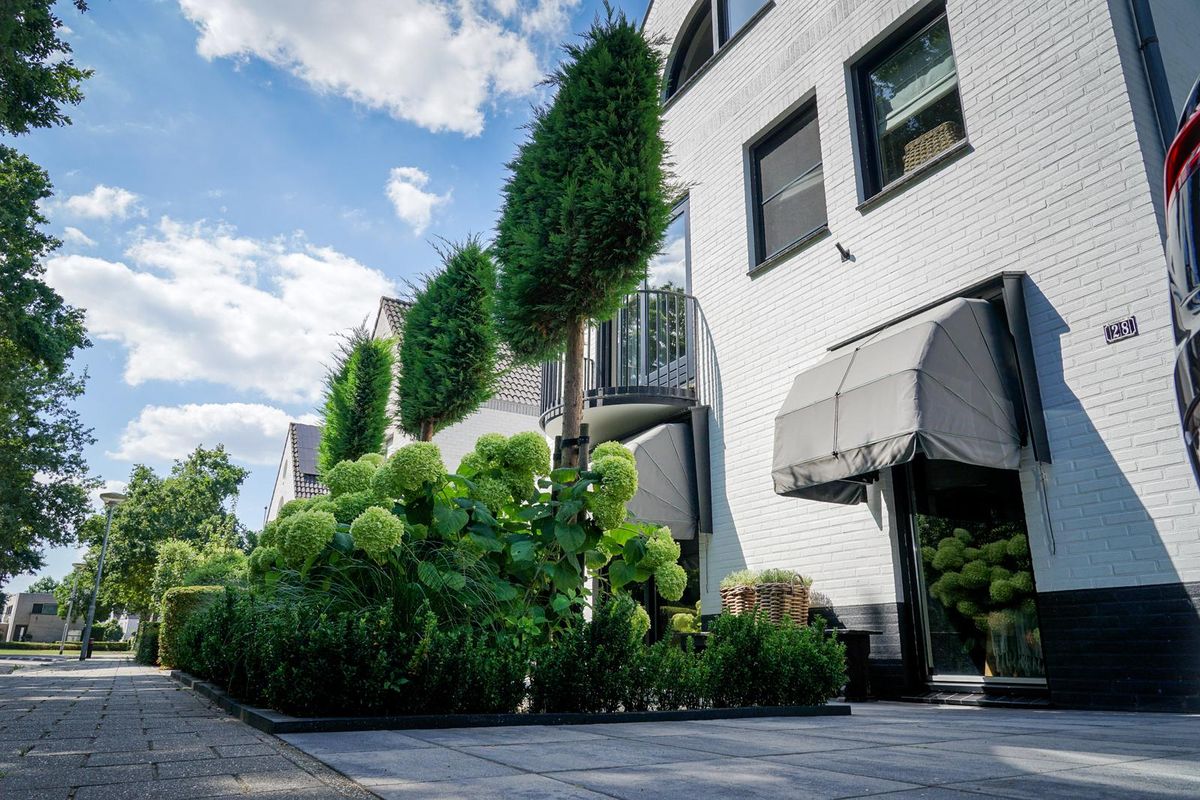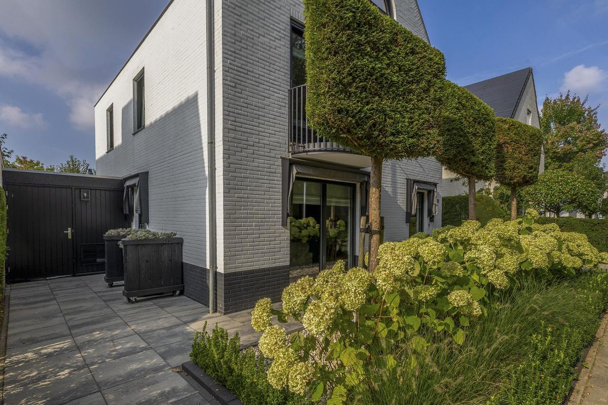 Het zonnescherm in de achtertuin is elektrisch en aan de voorzijde van de woning bevinden zich de markiezen. De voortuin is eveneens zeer keurig aangelegd. De eigen oprit zorgt voor parkeergelegenheid op eigen terrein.