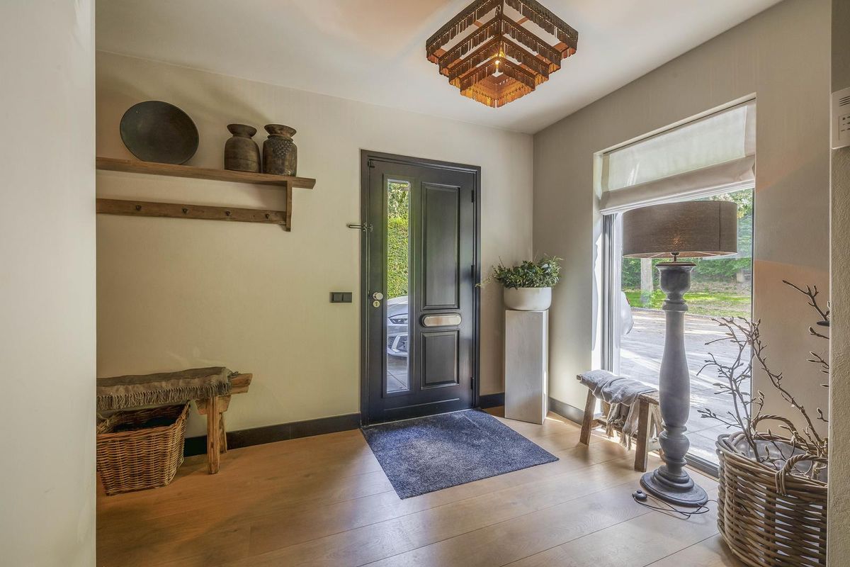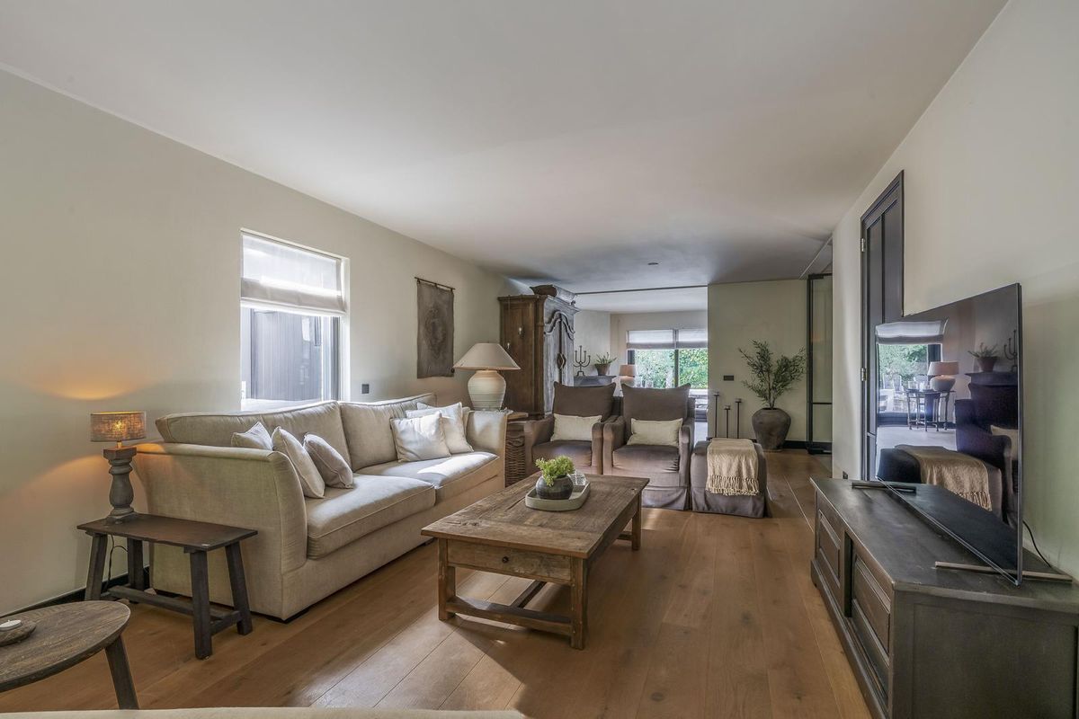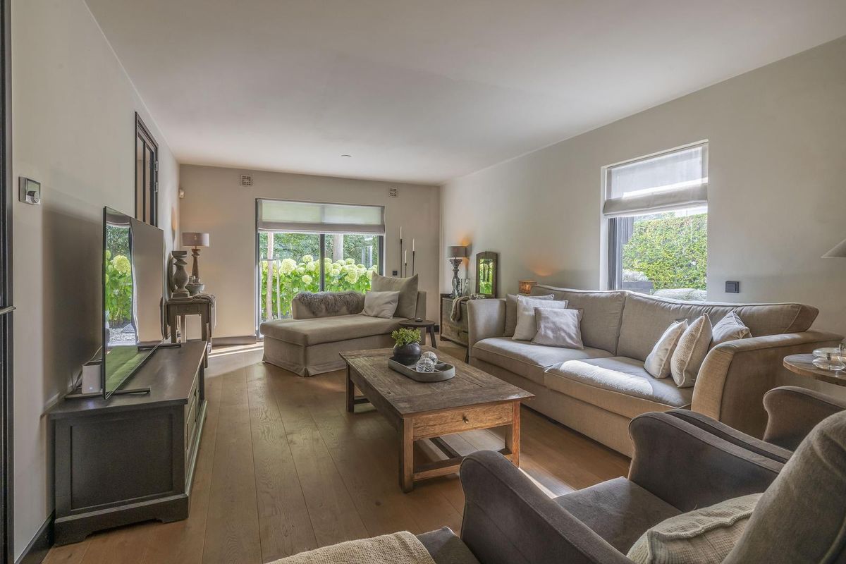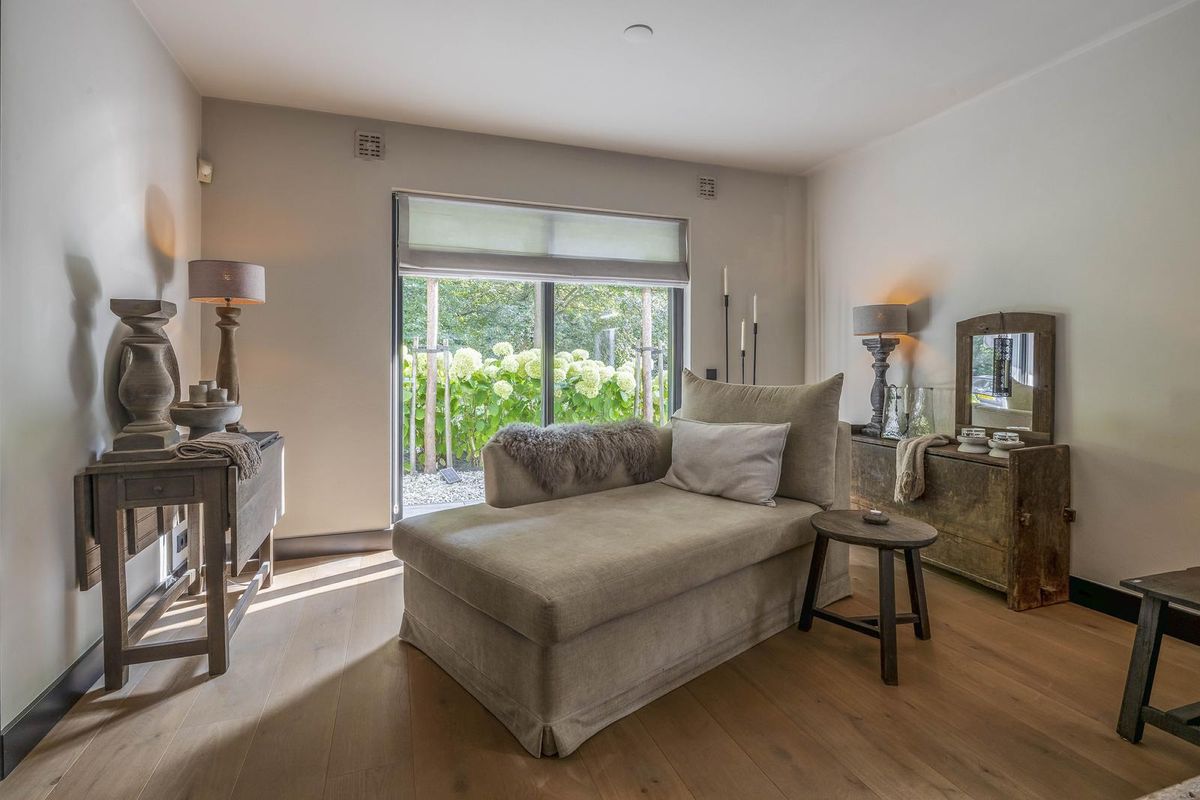 De royale, eiken houten, leefkeuken (ca. 35m²) is voorzien van een kookeiland met inductiekookplaat met geïntegreerde afzuiging, een Quooker, stoomoven, combi oven/magnetron, koelkast, diepvries, vaatwasser, koffiezetapparaat en wijnkoeler. De schuifpui (met hor) biedt directe toegang tot de tuin.