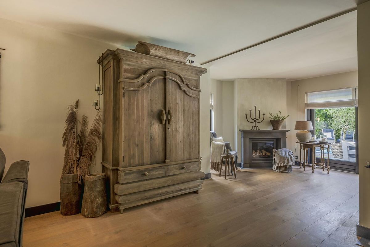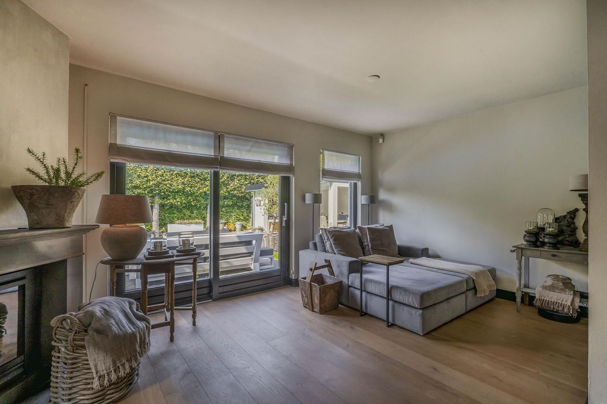In de royale woonkamer (ca. 52m²) ligt een mooie, houten vloer. Aan de voorzijde geniet je van vrij uitzicht op het aanwezige groen. De trapkast zorgt voor extra bergruimte. Achterin is een gashaard aanwezig. De schuifpui biedt directe toegang tot de achtertuin.