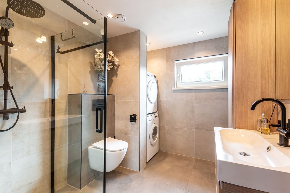 Boven aangekomen vind je aan de overloop drie ruime slaapkamers en de badkamer. Alle kamers zijn voorzien van laminaatvloeren en grote ramen die zorgen voor een prettige lichtinval. Twee slaapkamers zijn voorzien van airco voor koelen en verwarmen en brengen ook hier weer een heerlijk leefklimaat in de ruimtes. Aan de achterzijde liggen twee slaapkamers en aan de voorzijde een bevindt zich de derde kamer met daarnaast de badkamer. De badkamer is recent vernieuwd en straalt rust en comfort uit: grote tegels in warme tinten en houtaccenten geven deze ruimte een eigentijdse uitstraling. Er is een tweede toilet, een wastafelmeubel met spiegel en een ruime douchecabine met regendouche. Alles voelt fris en verzorgd – klaar om direct te gebruiken.